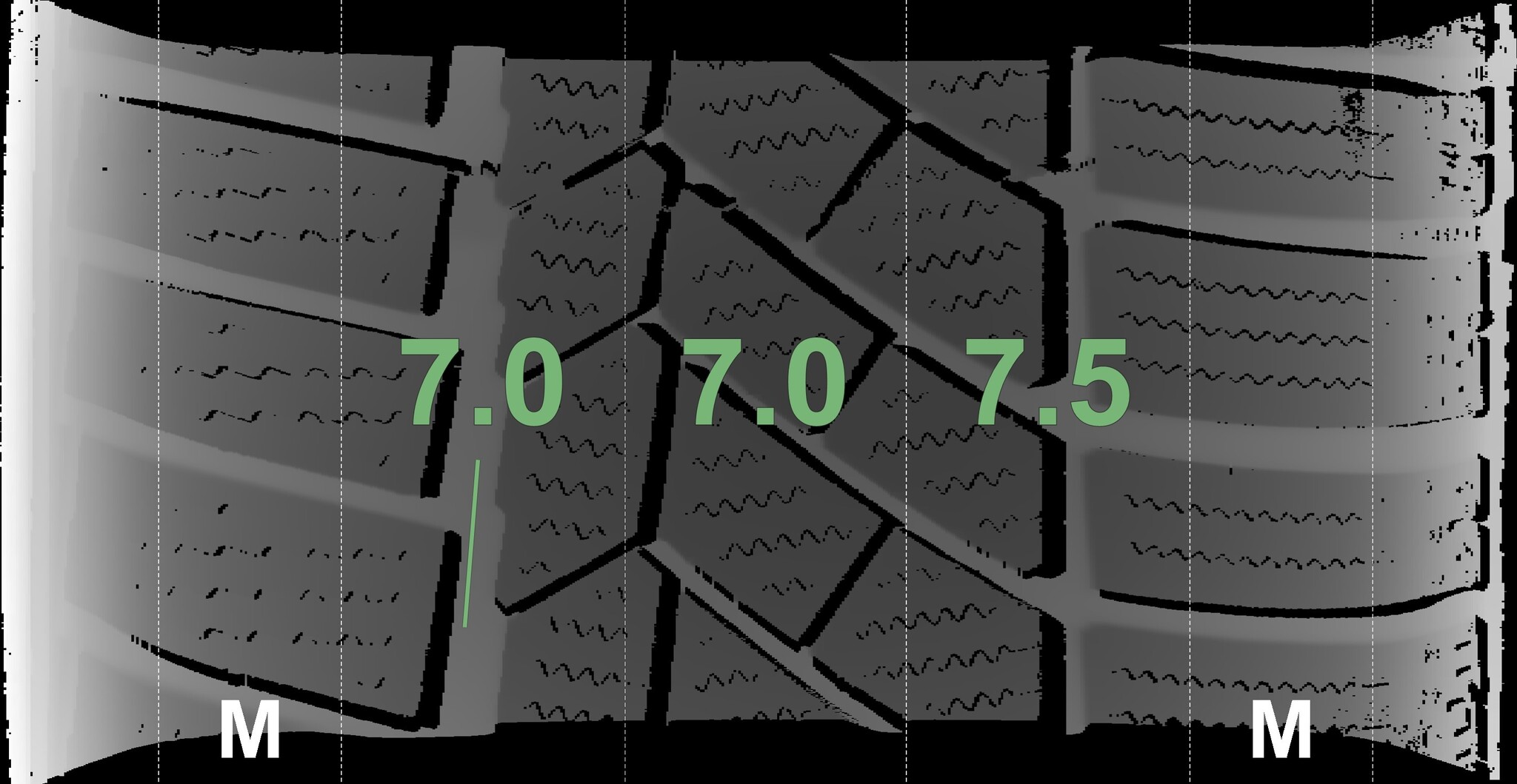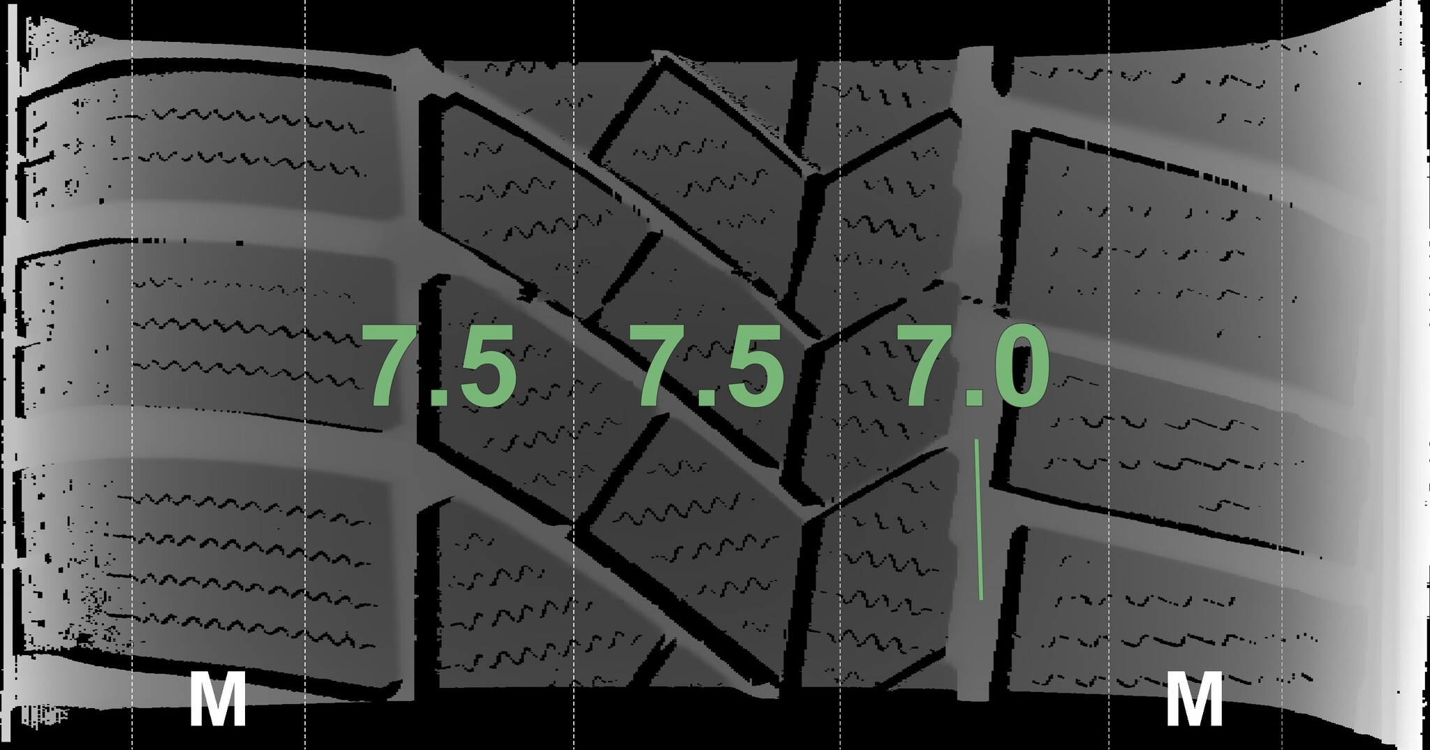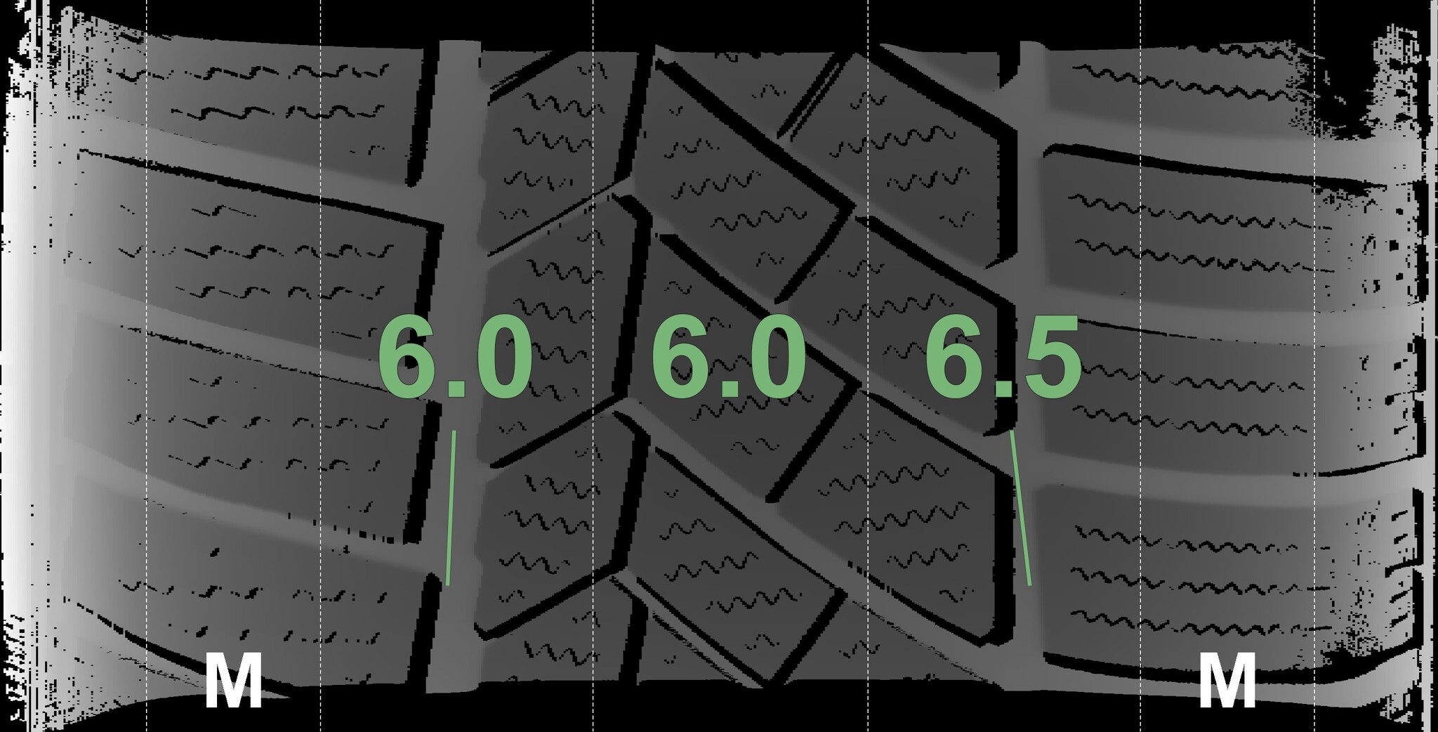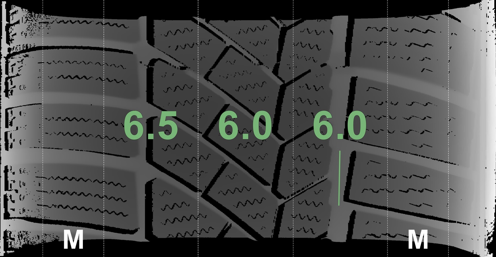 The measured tread depths and details of the rims are shown above.