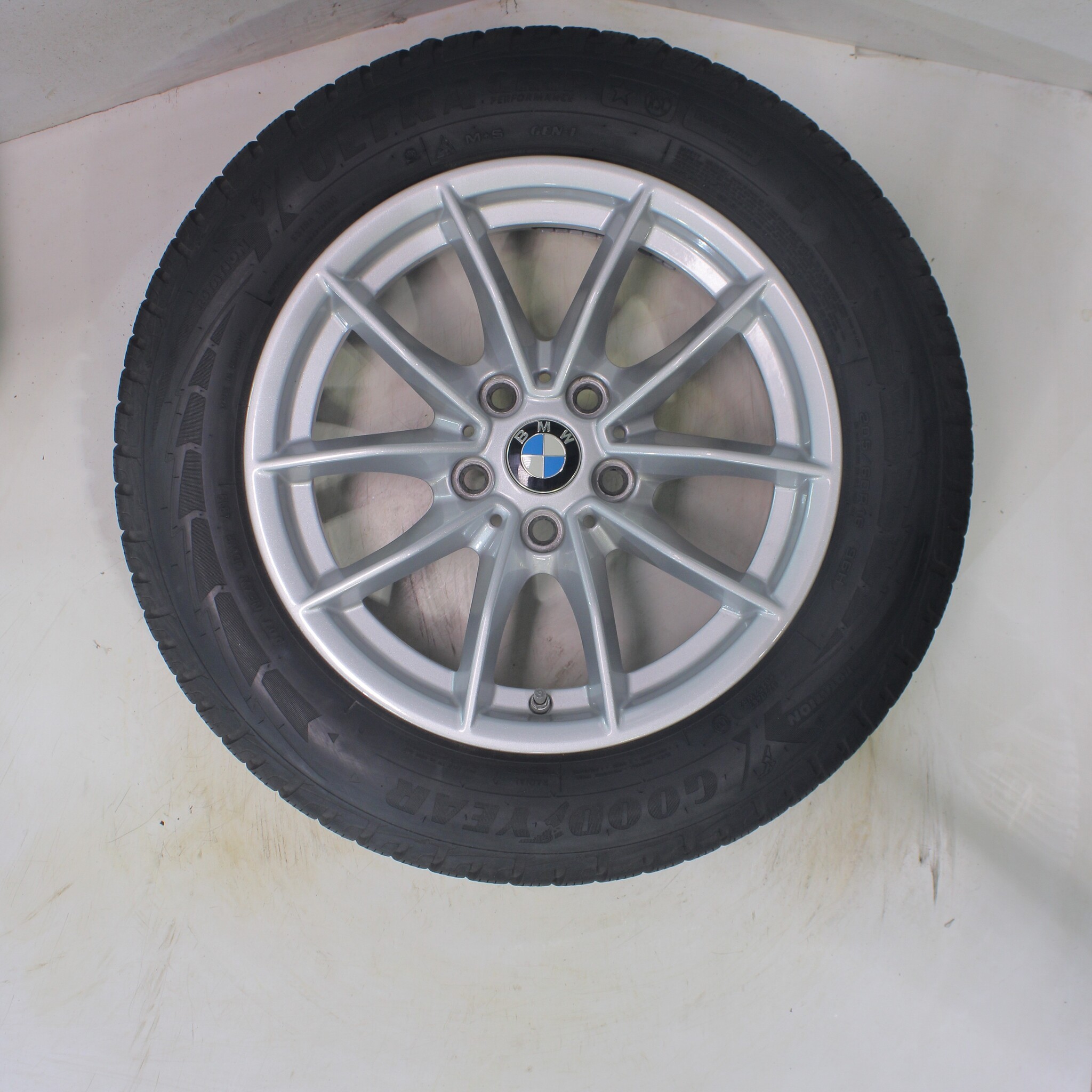Original BMW wheelset, styling 774, 16-inch rims with Goodyear ULTRAGRIP PERFORMANCE GEN-1 Runflat Winter Tires. These rims are original BMW brand rims and suitable for: BMW 2 series 3 series 4 series G20 G21 G22 G42.