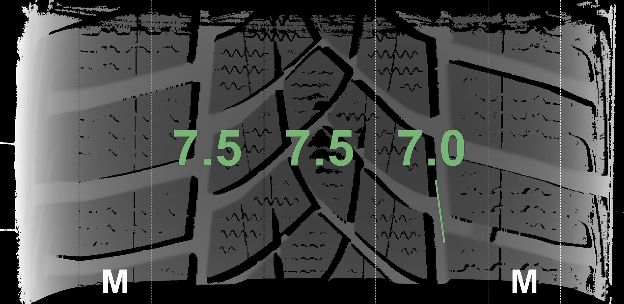 The measured tread depths and the details of the rims are shown above.