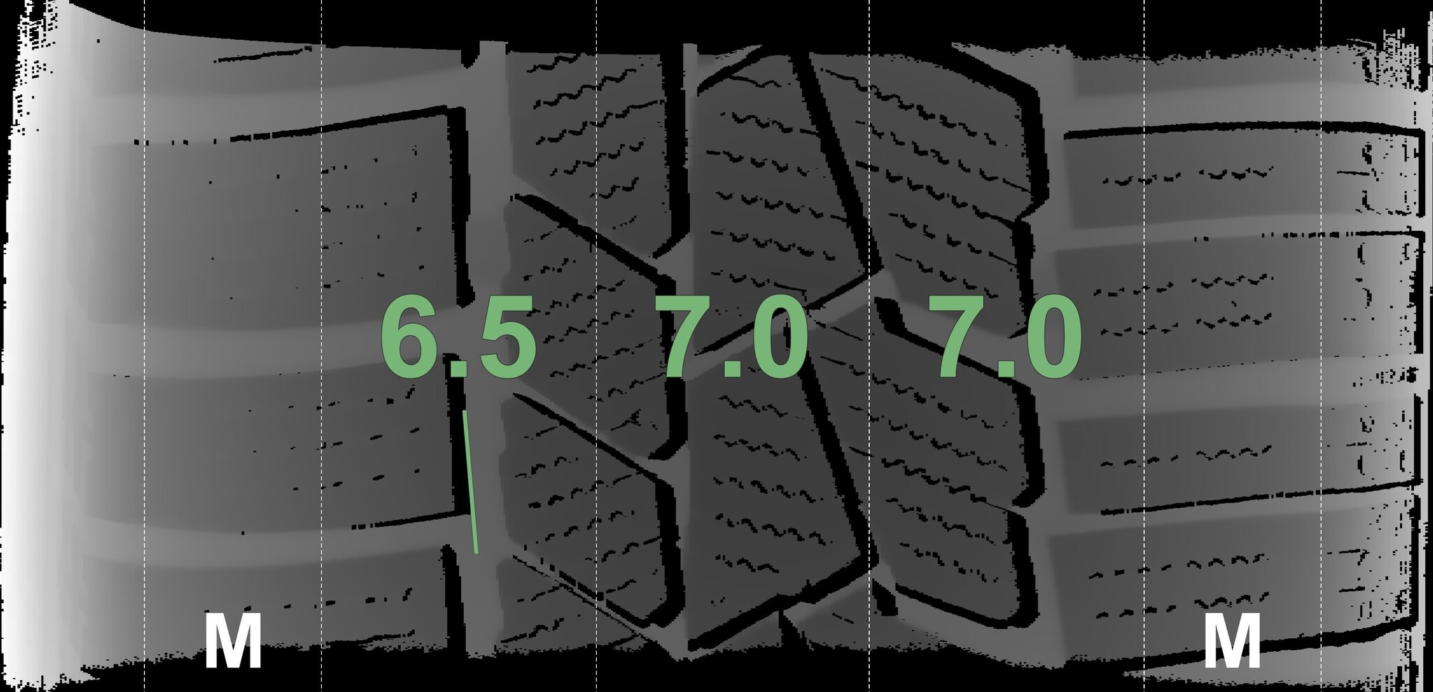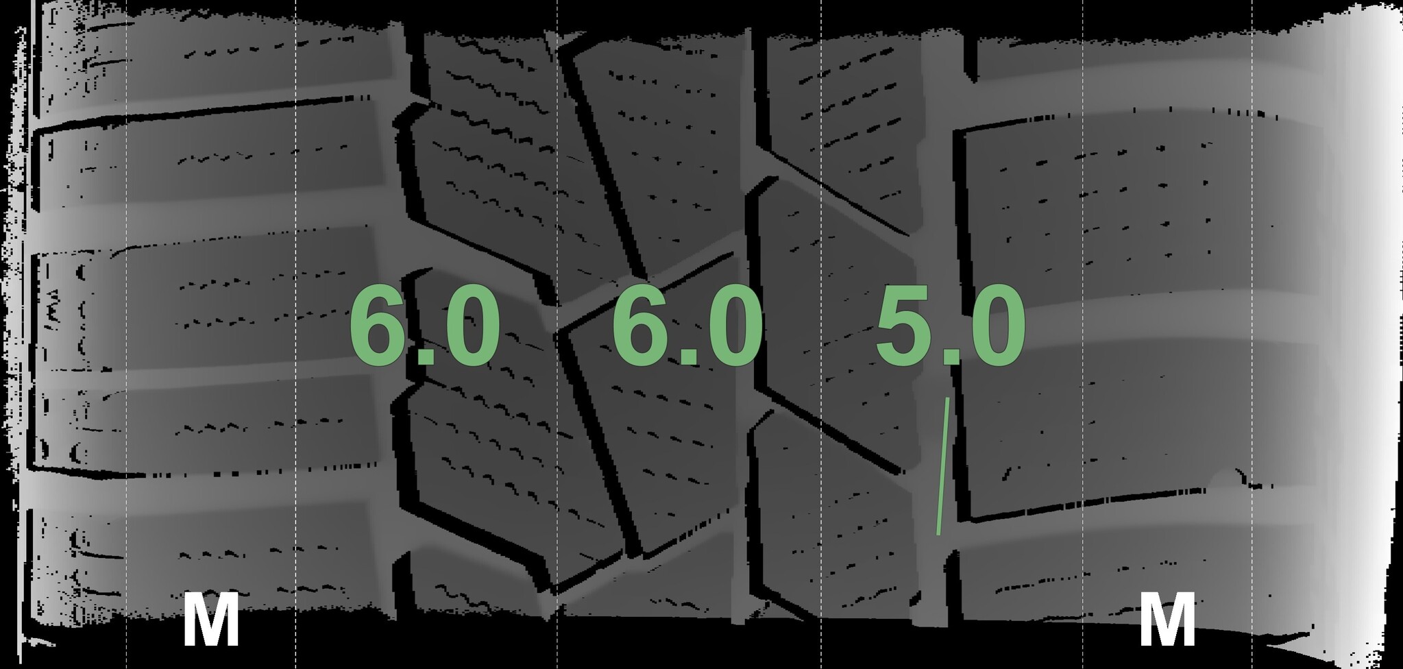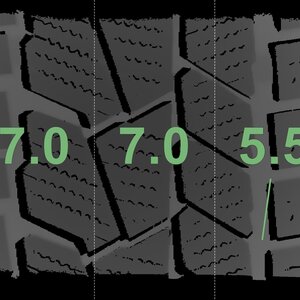 The measured tread depths and the details of the wheels are shown above.