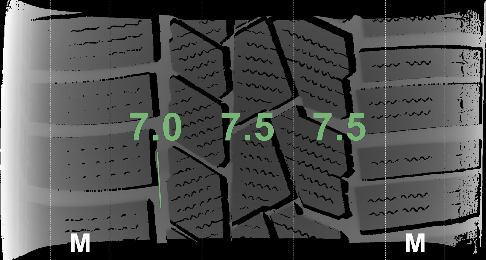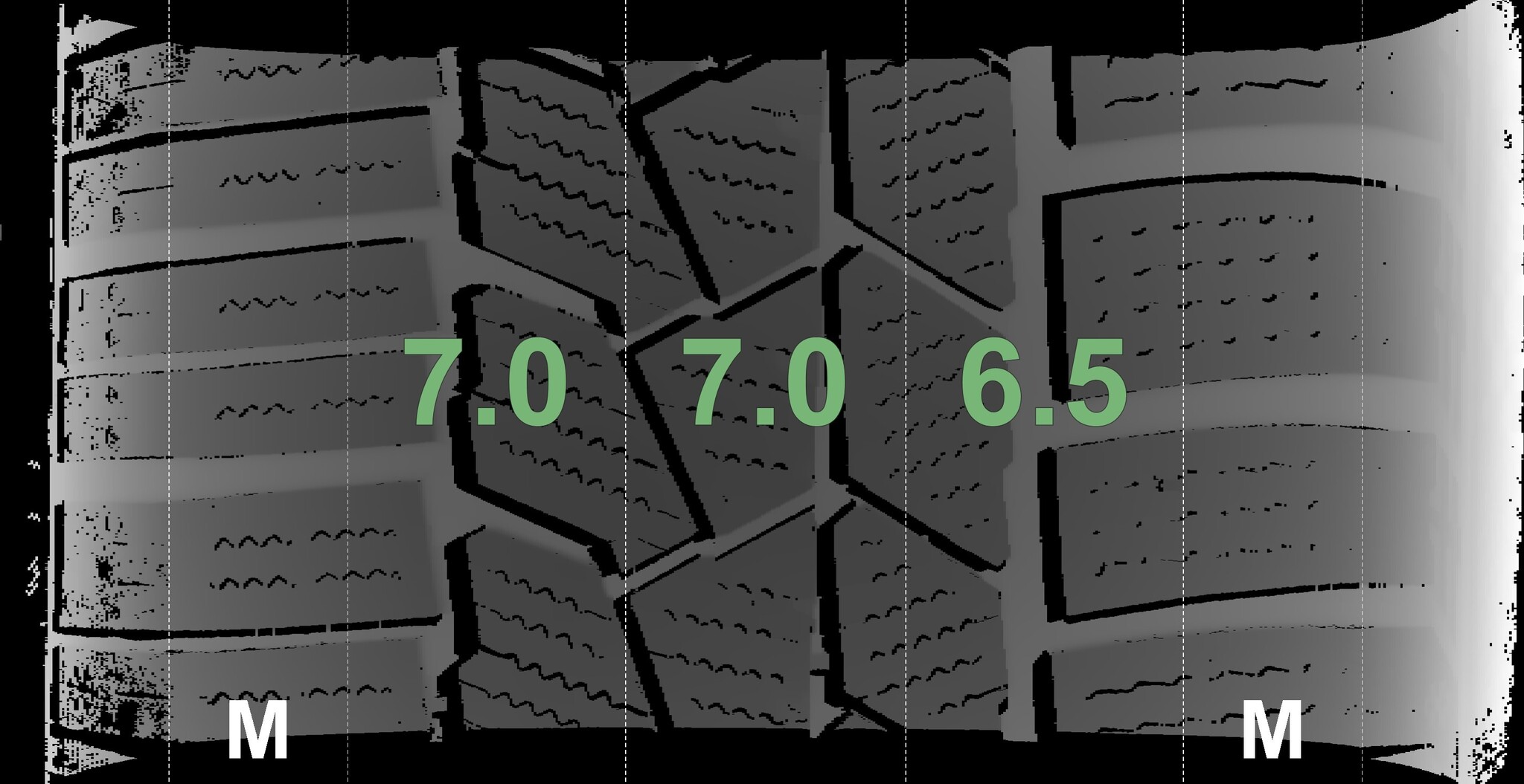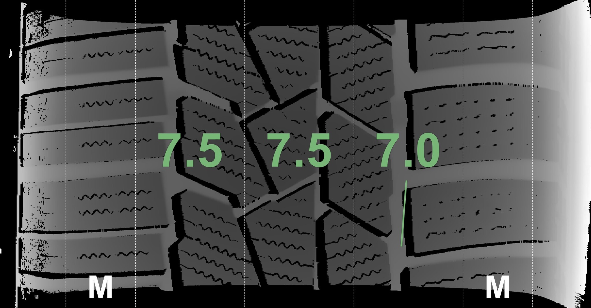 | Condition | Profile depth | DOT | Front Right | Used | 6.8 mm | 3121 |