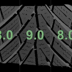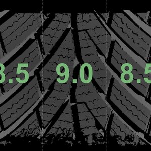 The measured tread depths and details of the rims are shown above.