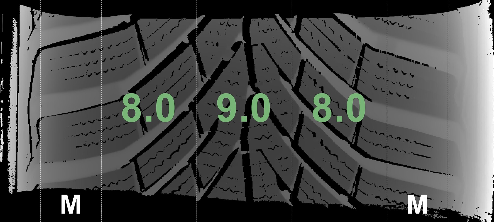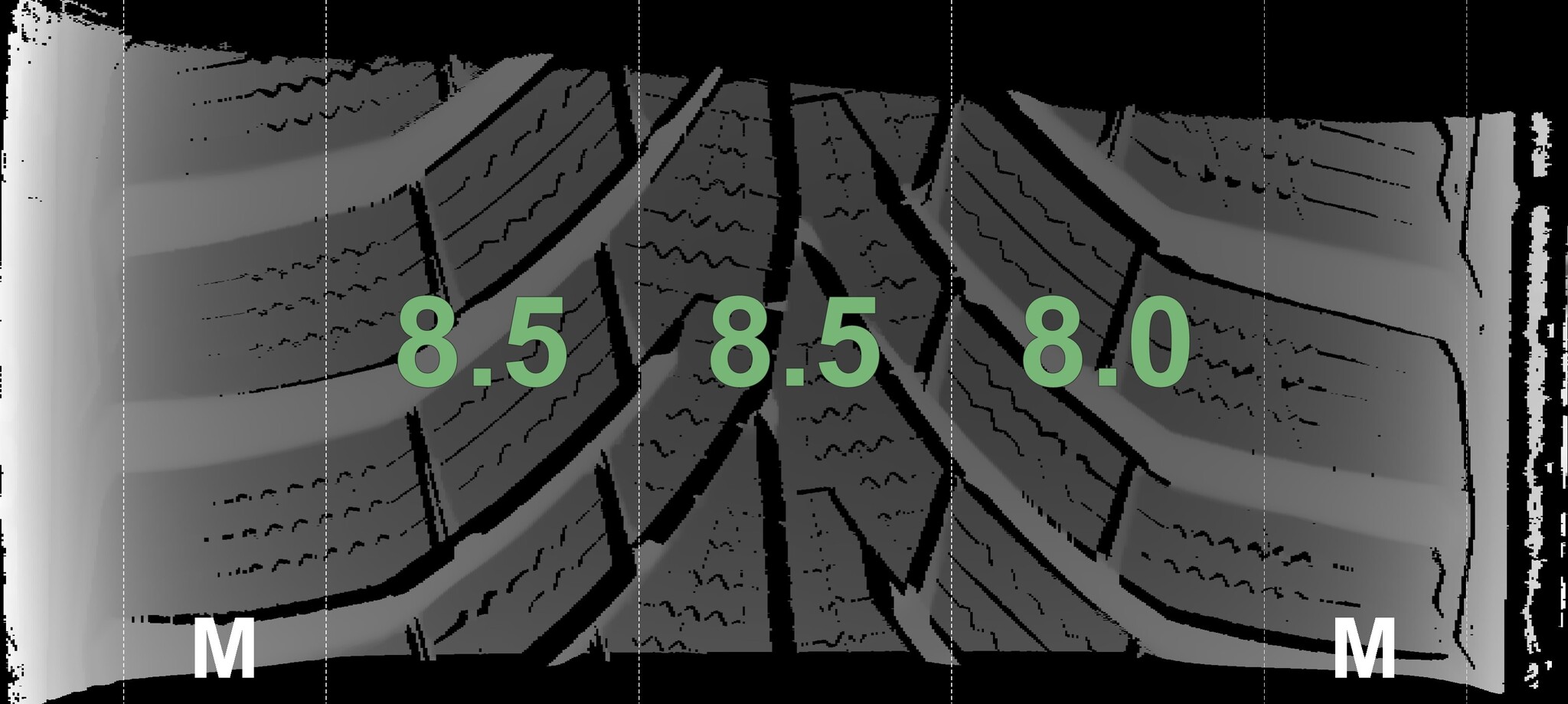 | Condition | Profile depth | DOT | Rear Right | New | 8.7 mm | 4225 |