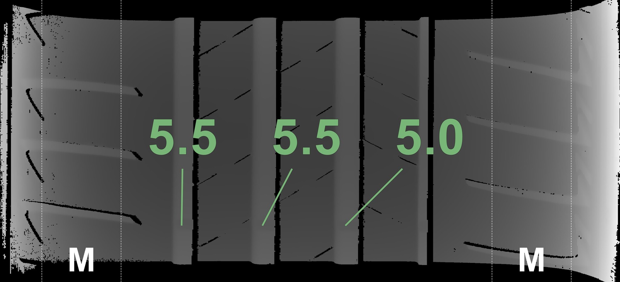 | Condition | Profile depth | DOT | Front Left | Used | 5.0 mm | 4620 |