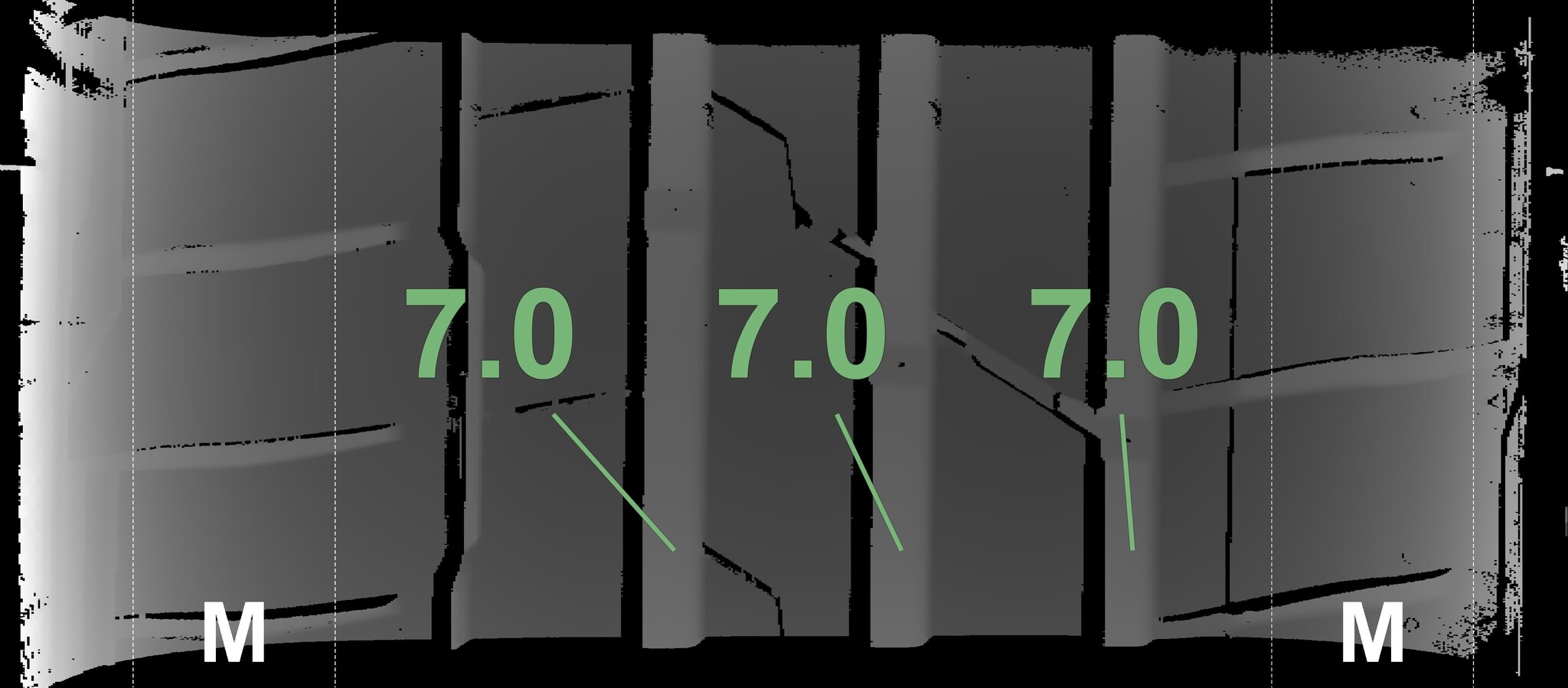 | Condition | Profile depth | DOT | Front Left | New | 7.0 mm | 5121 |