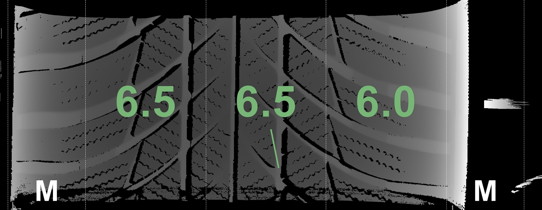 | Condition | Profile depth | DOT | Front Left | Used | 6.0 mm | 3519 |