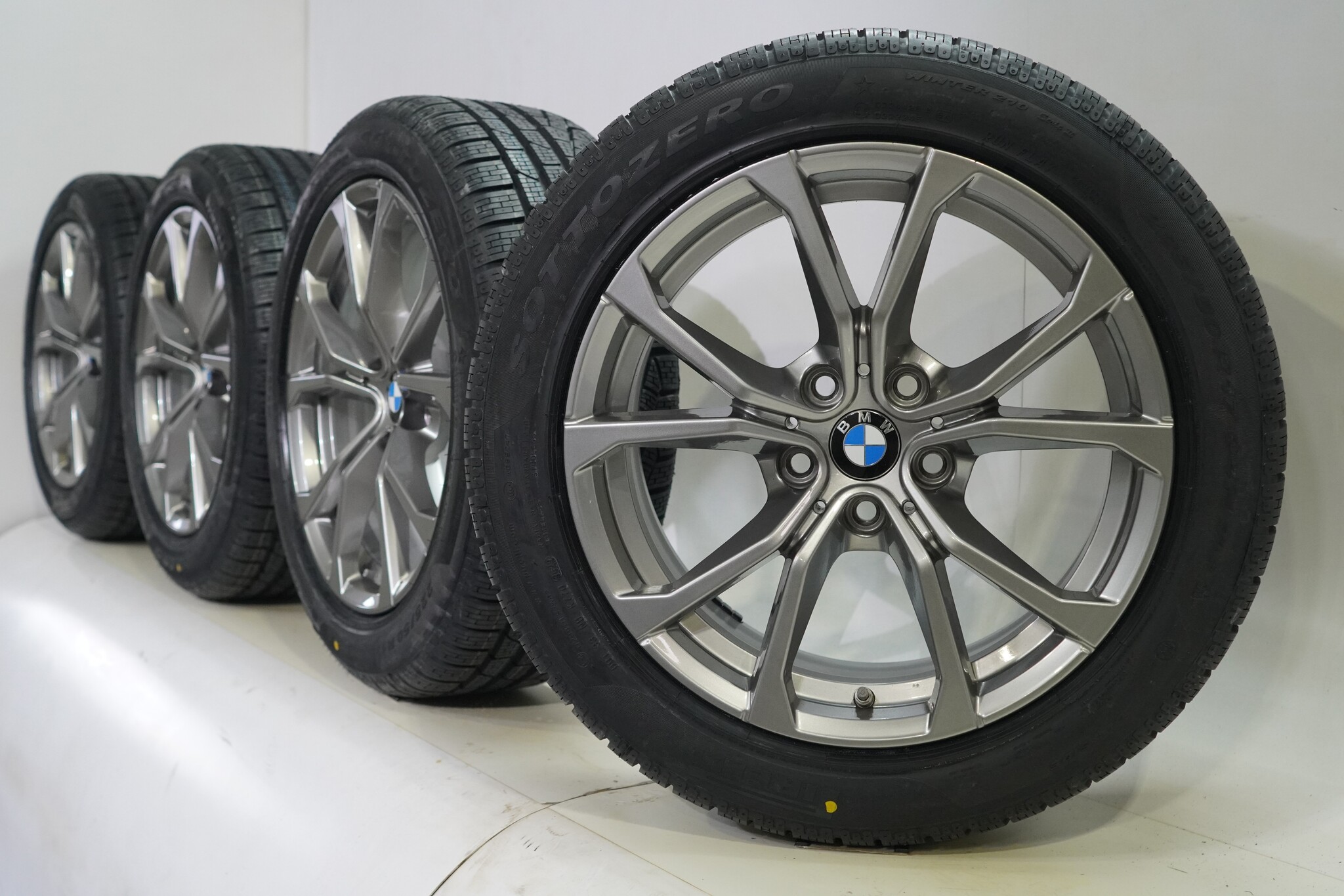 Original BMW wheel set, styling 776, 17-inch rims with Pirelli Sottozero Runflat Winter Tires. These rims are original BMW brand rims and suitable for: BMW 2 series 3 series 4 series G20 G21 G22 G42.