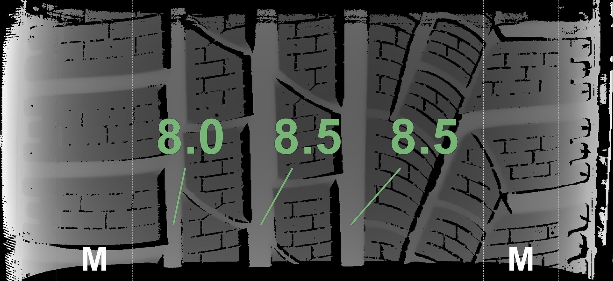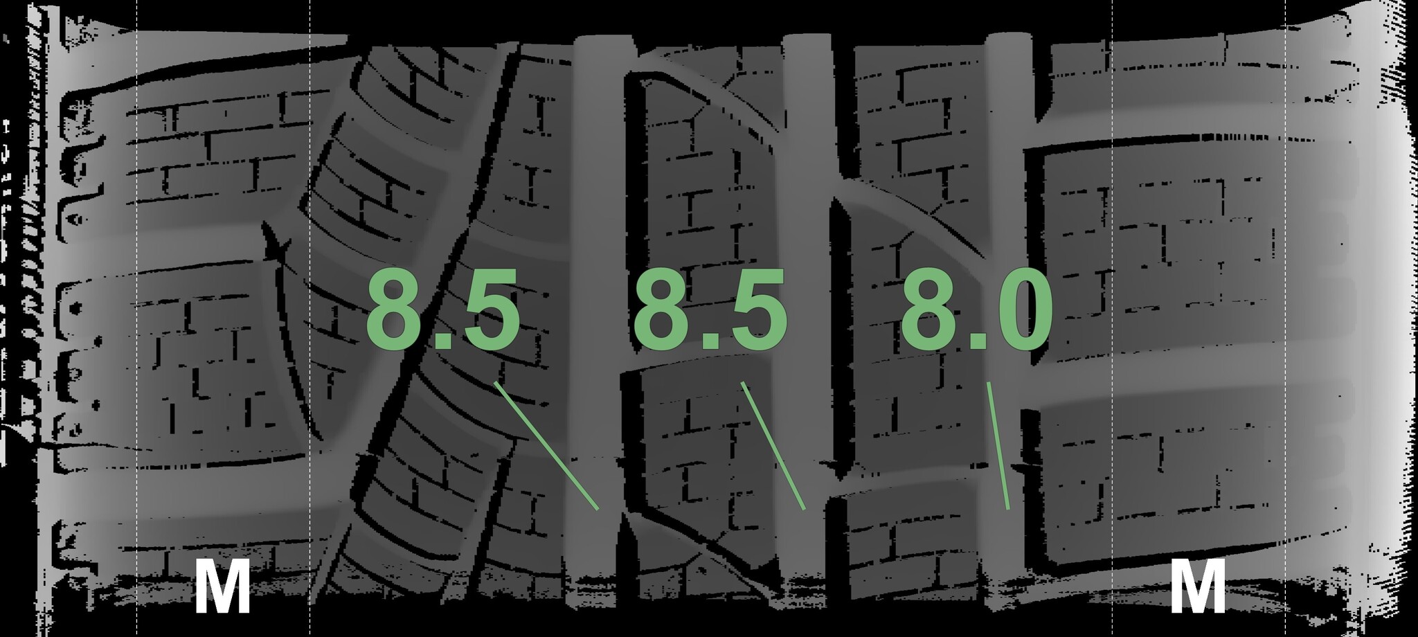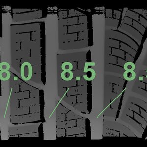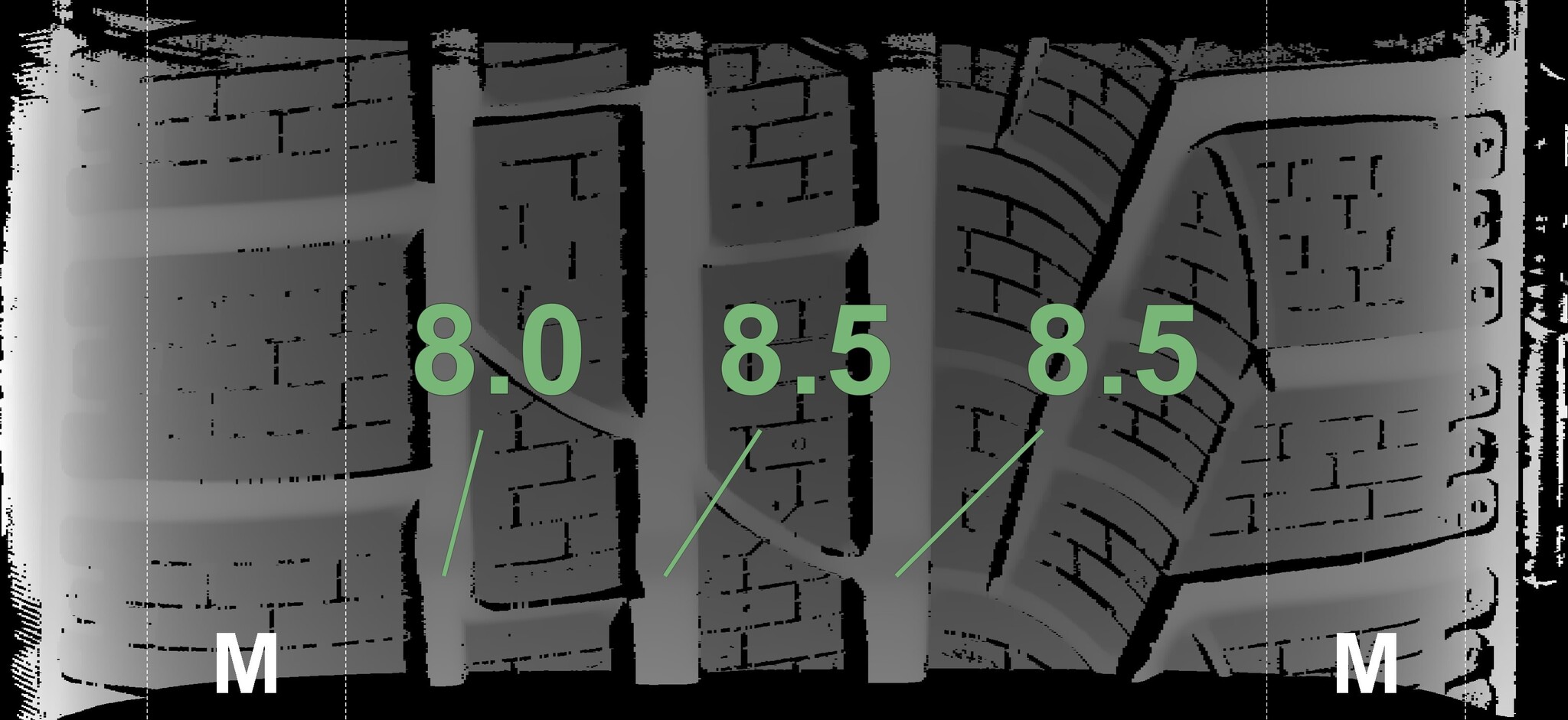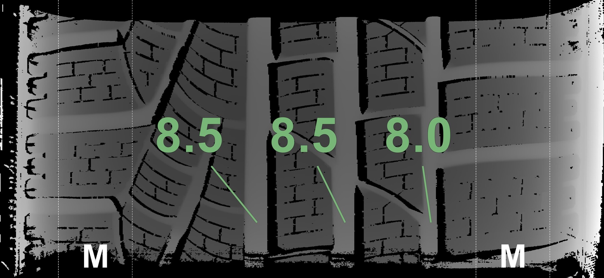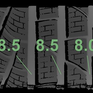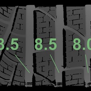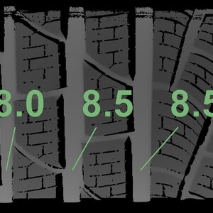 The measured tread depths and the details of the rims are shown above.