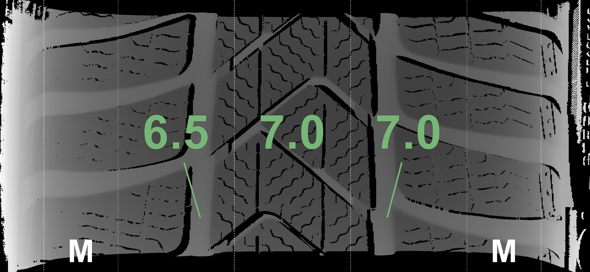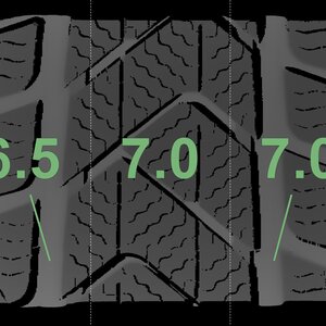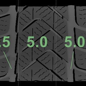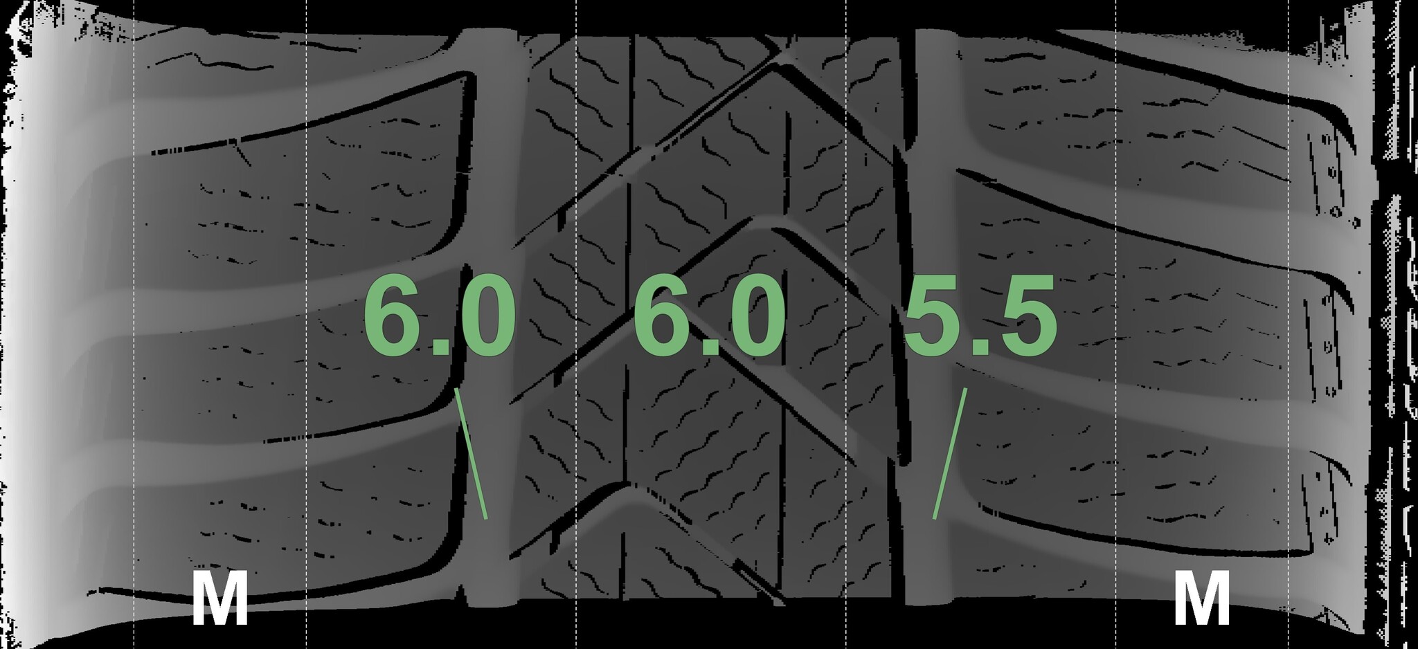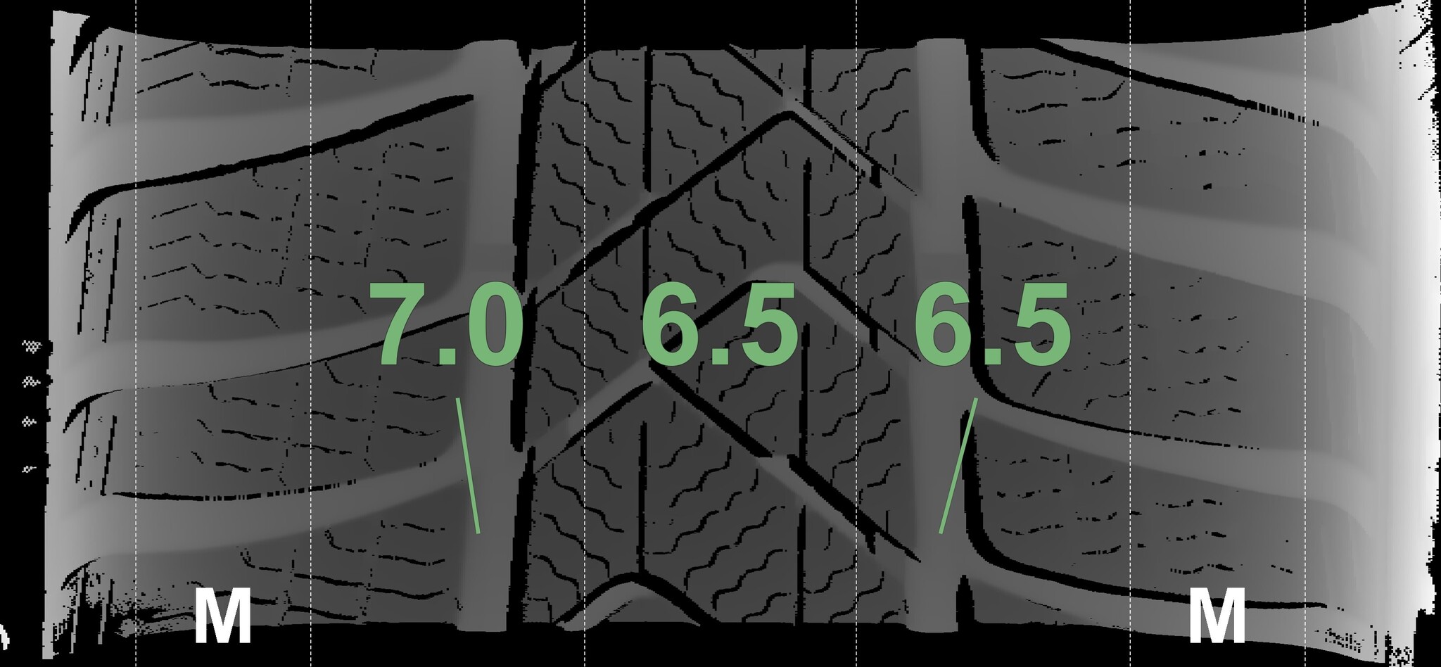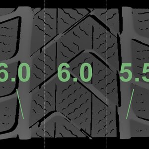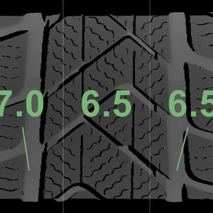The measured tread depths and the details of the rims are shown above.