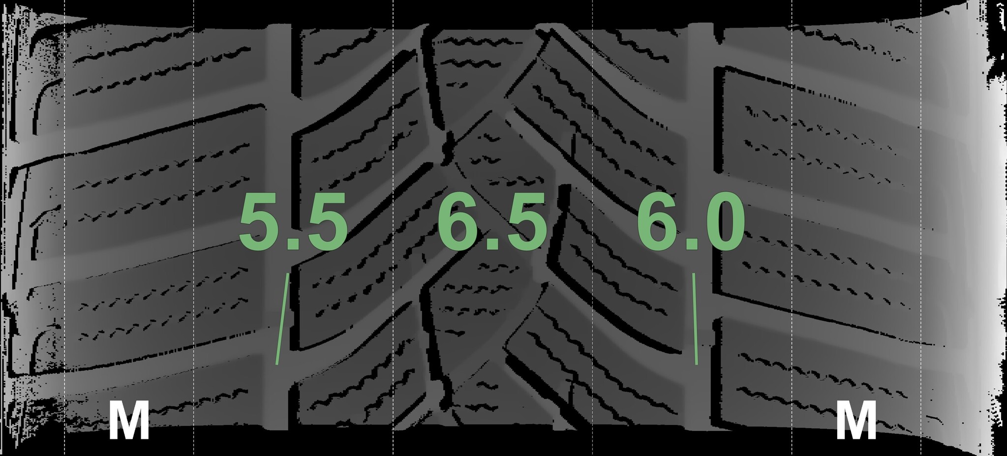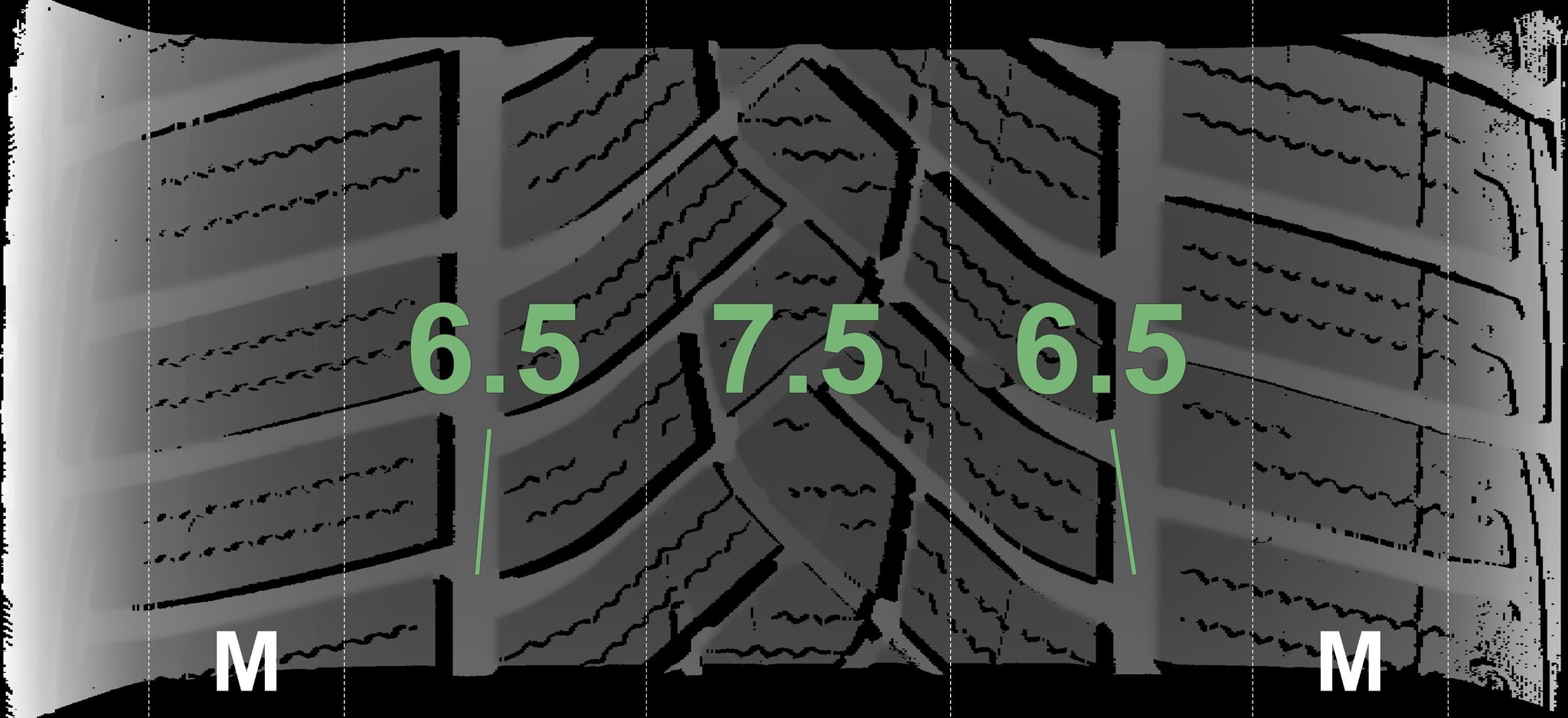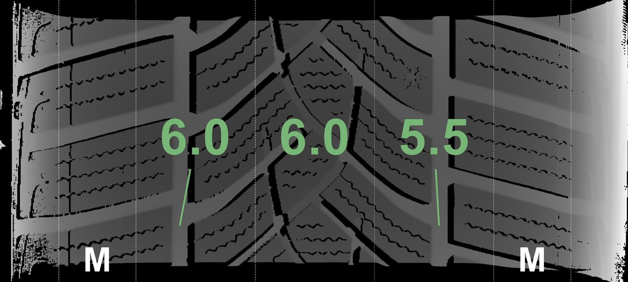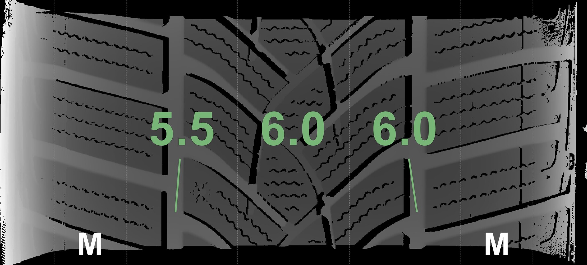 The measured tread depths and details of the rims are shown above.