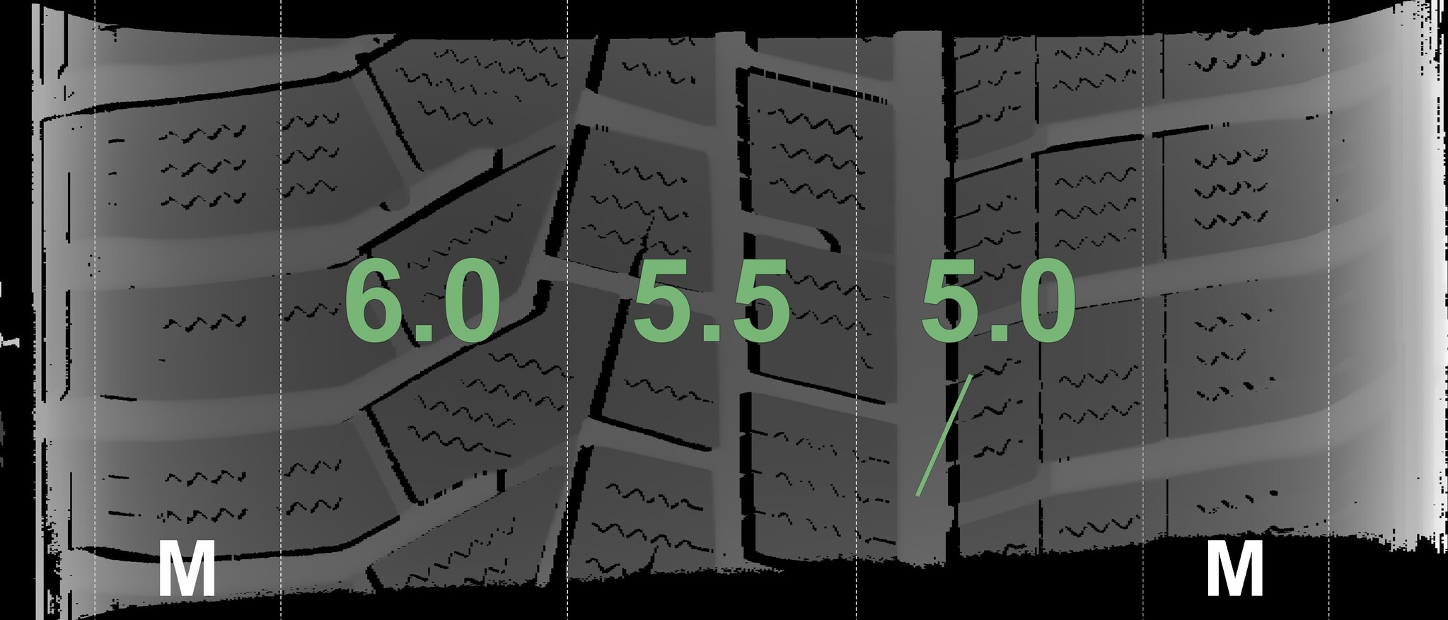 Condition | Profile depth | DOT | Front Right | Used | 5.0 mm | 2320 |