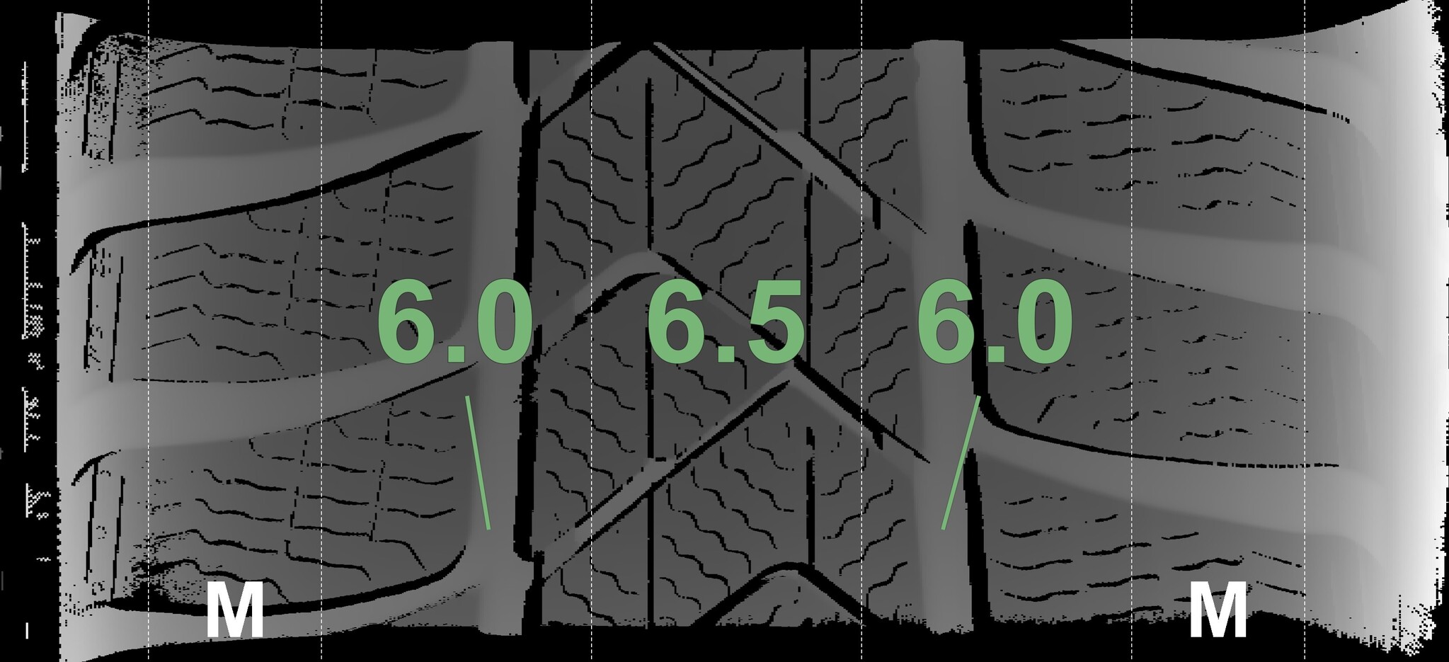 | Condition | Profile depth | DOT | Front Right | Used | 6.0 mm | 3722 |