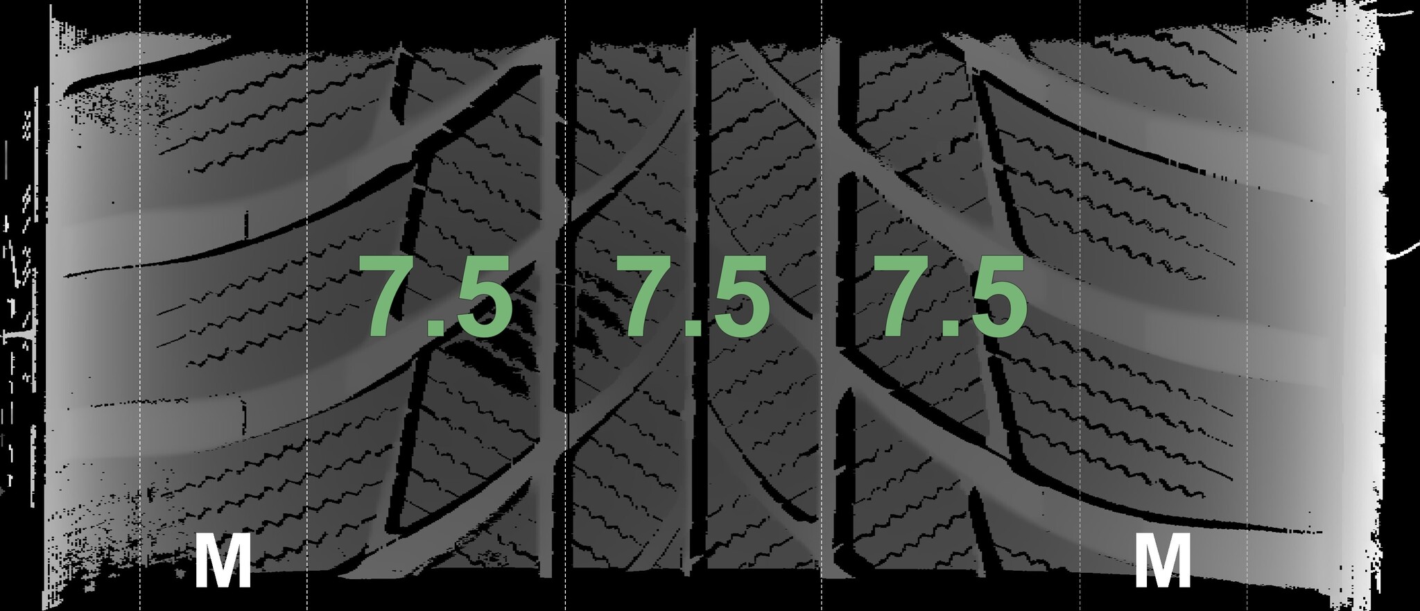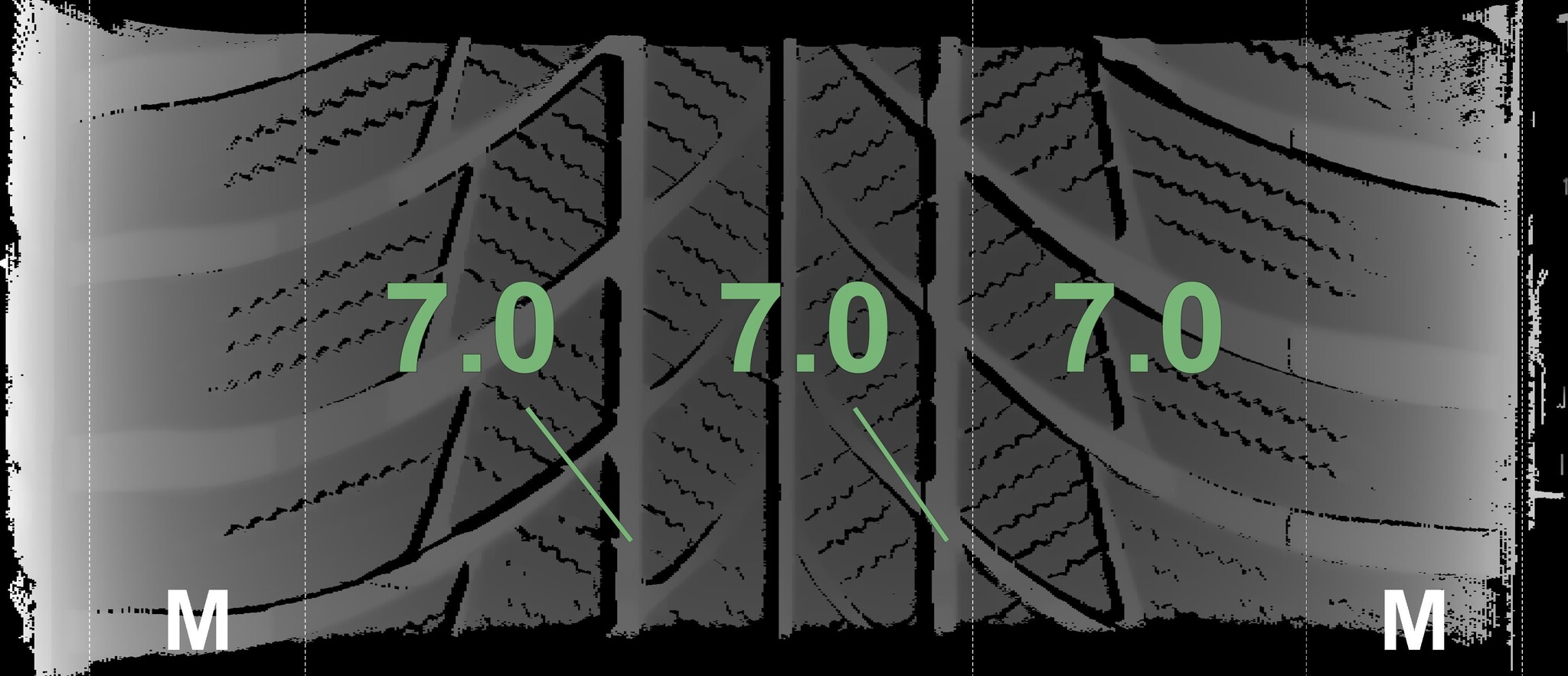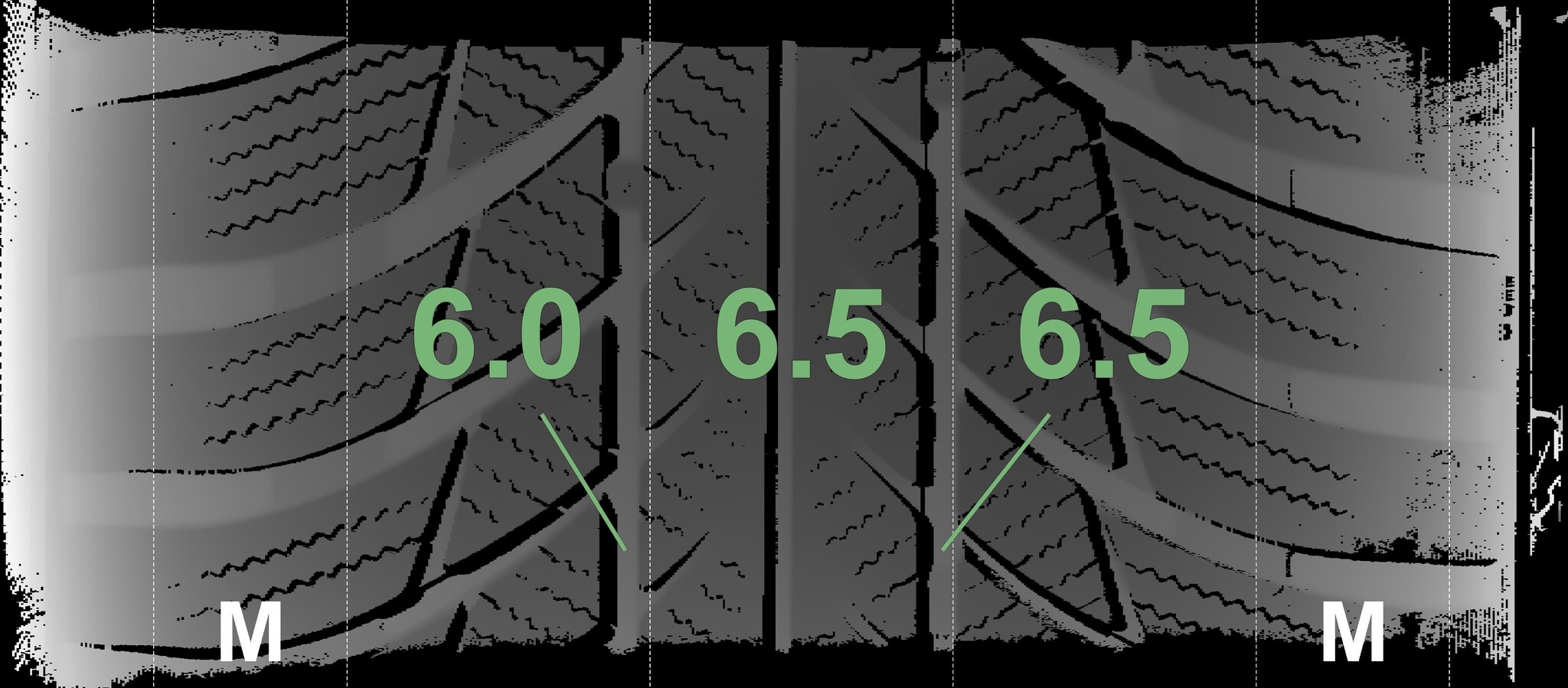 The measured tread depths and details of the rims are shown above.