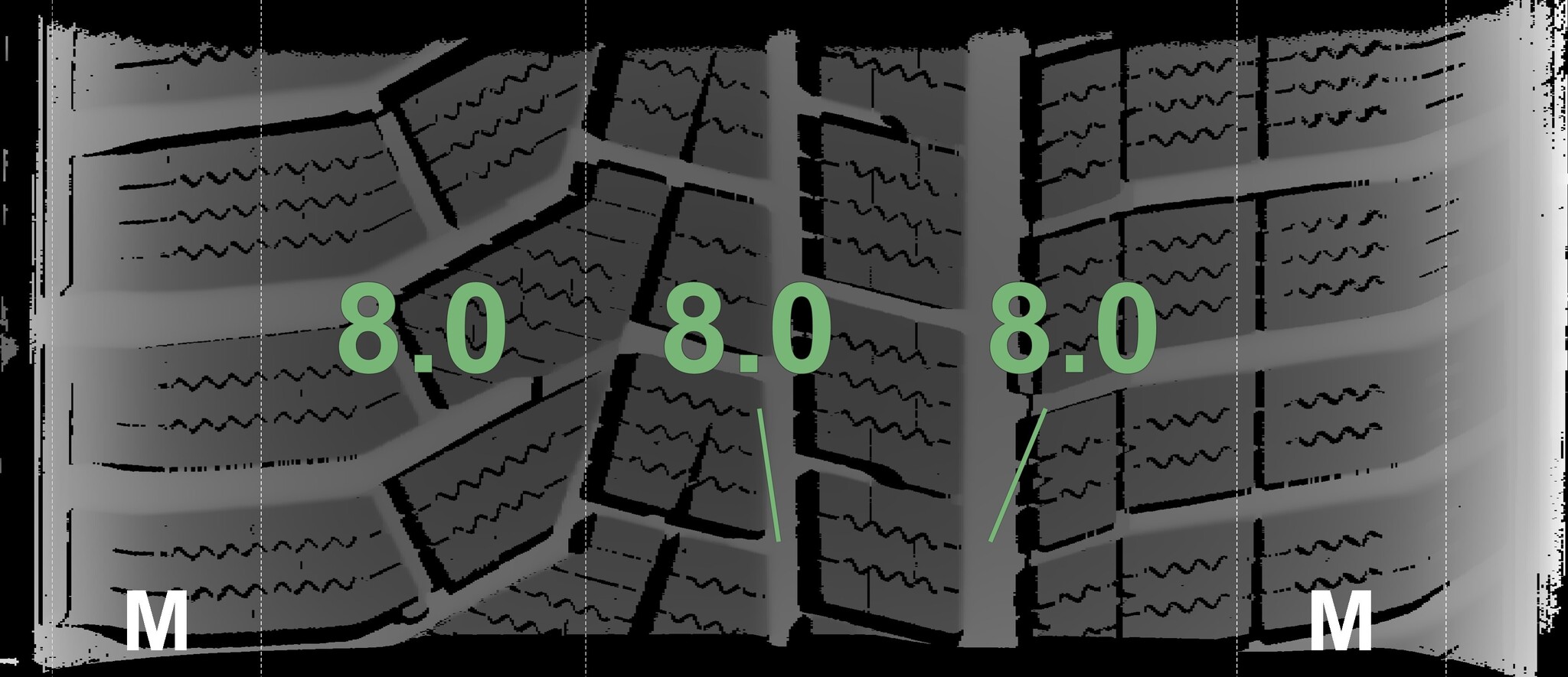 Condition | Profile depth | DOT | Front Left | Demo studs still visible | 7.5 mm | 4224 |