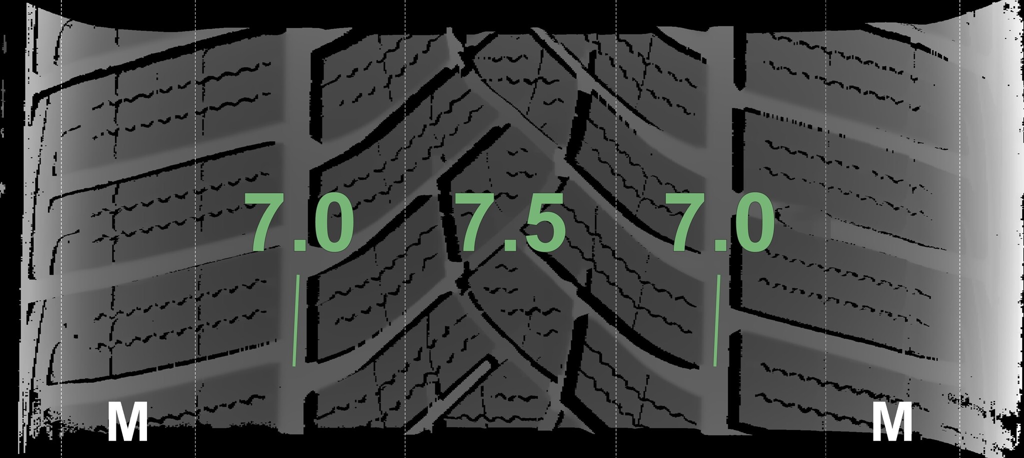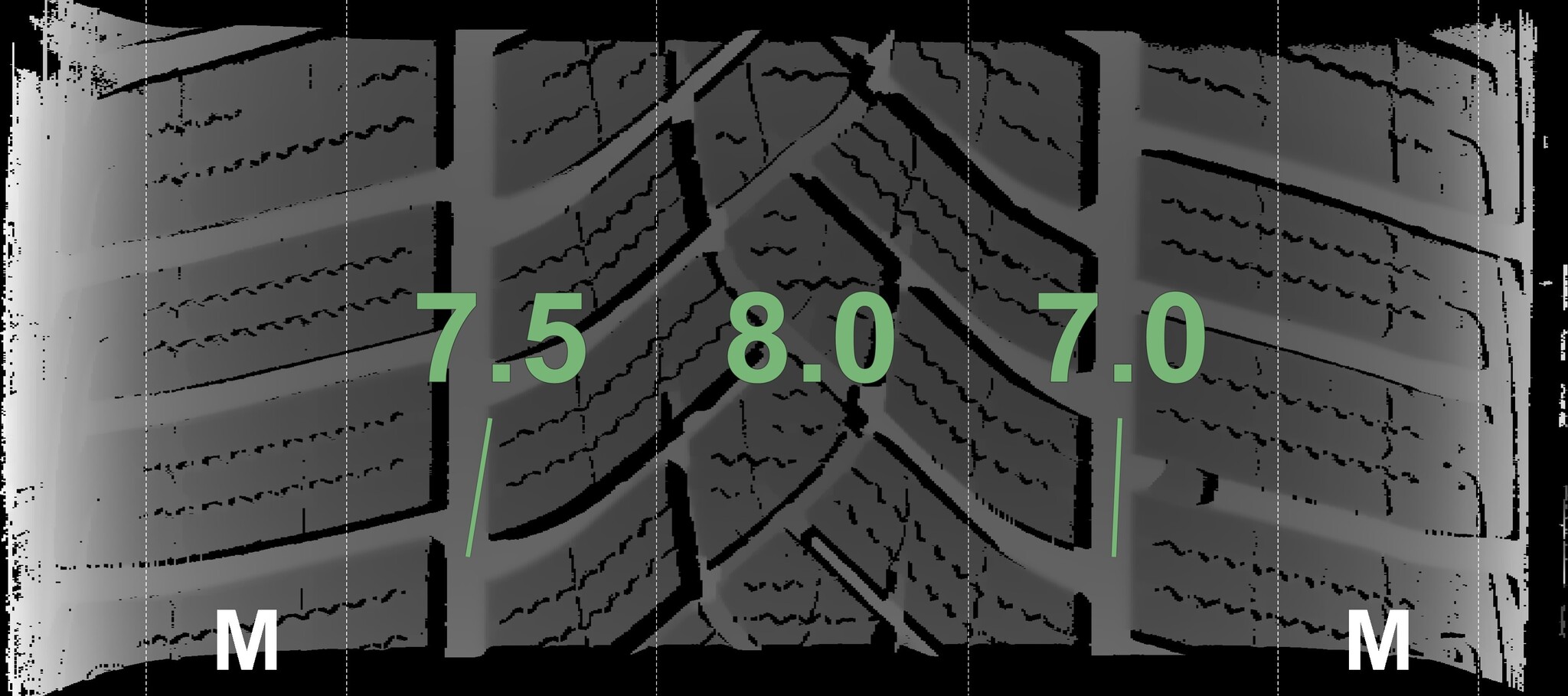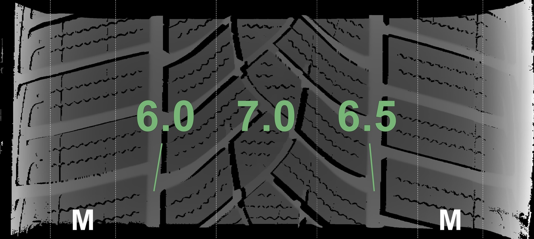 The measured tread depths and details of the rims are shown above.