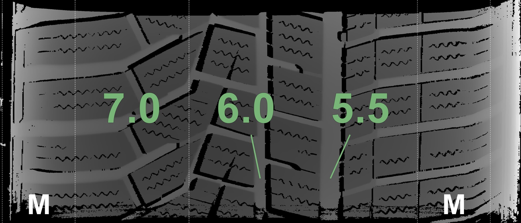 | Condition | Profile depth | DOT | Front Left | Used | 6.0 mm | 2819 |