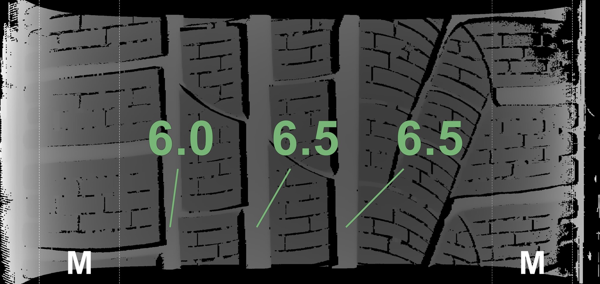 | Condition | Profile depth | DOT | Front Right | Used | 6.0 mm | 4719 |