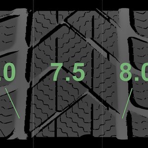 The measured tread depths and details of the rims are shown above.