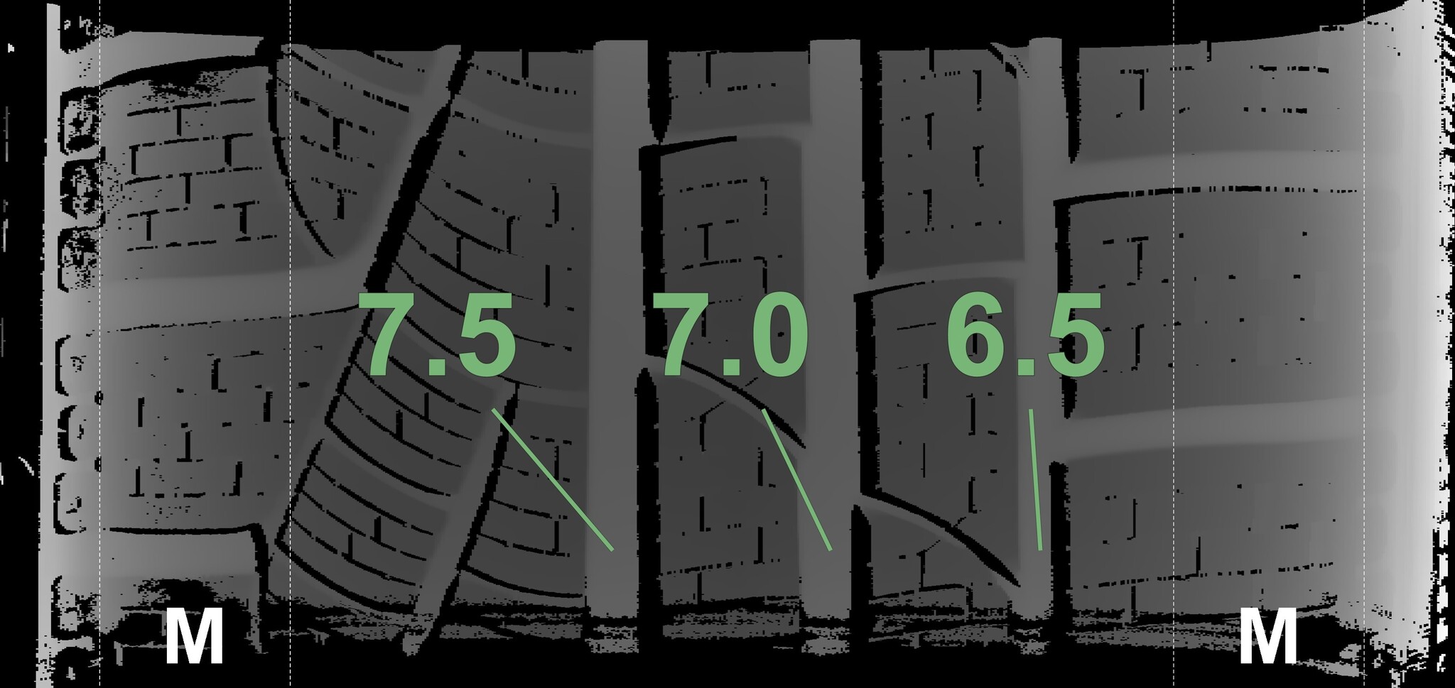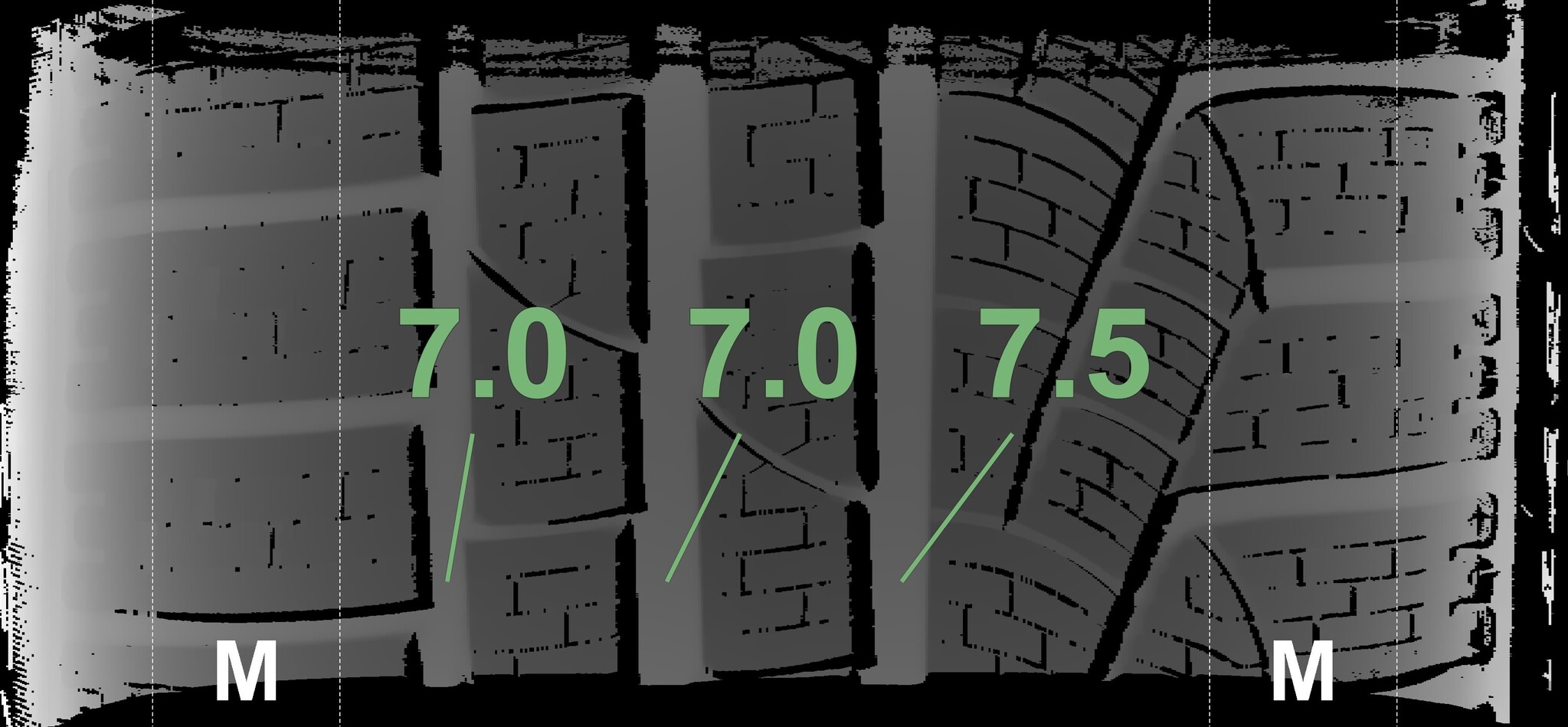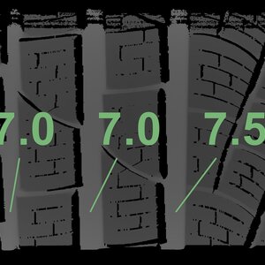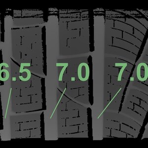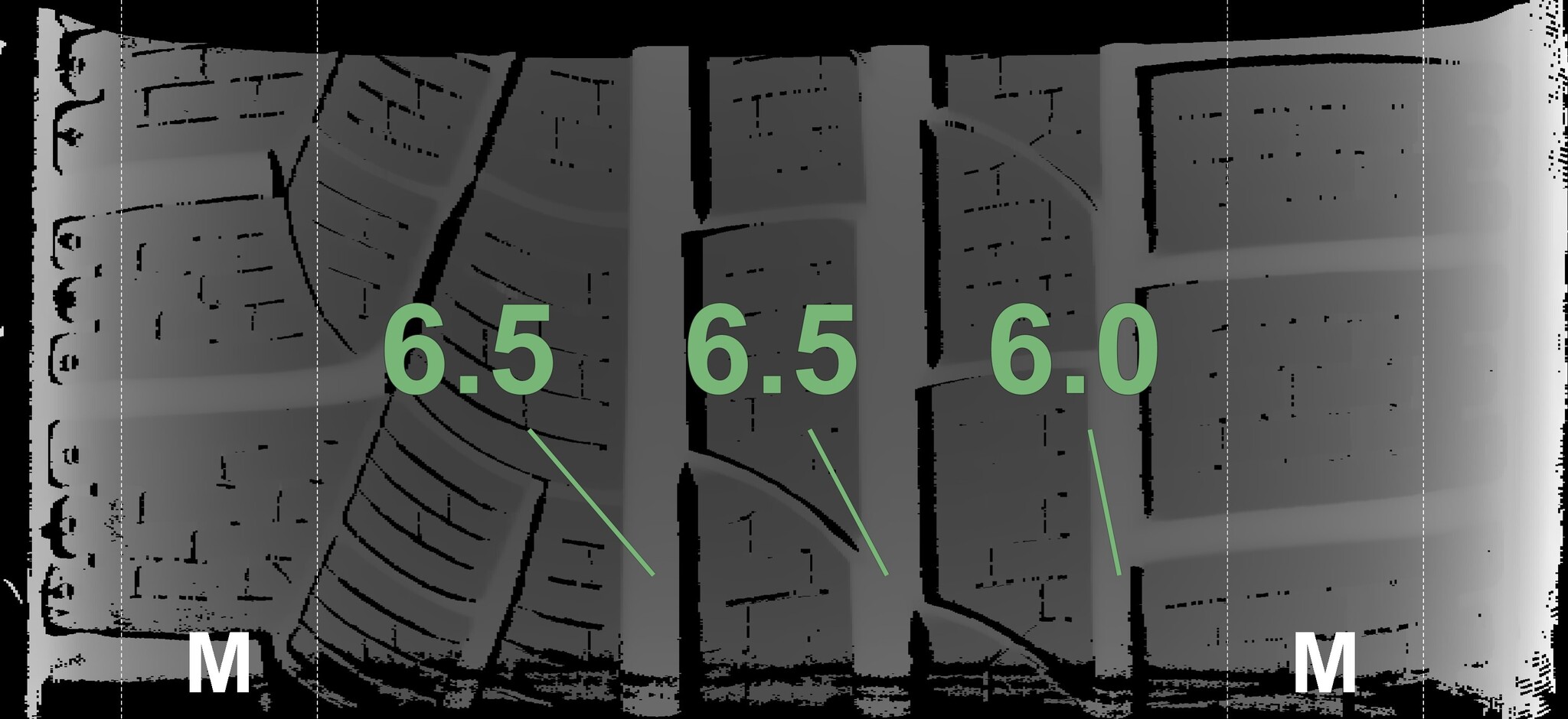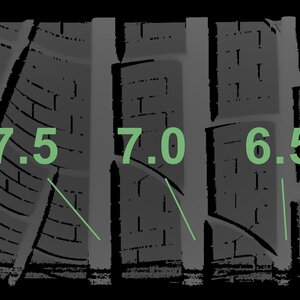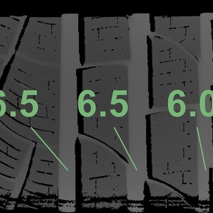 The measured tread depths and the details of the rims are shown above.