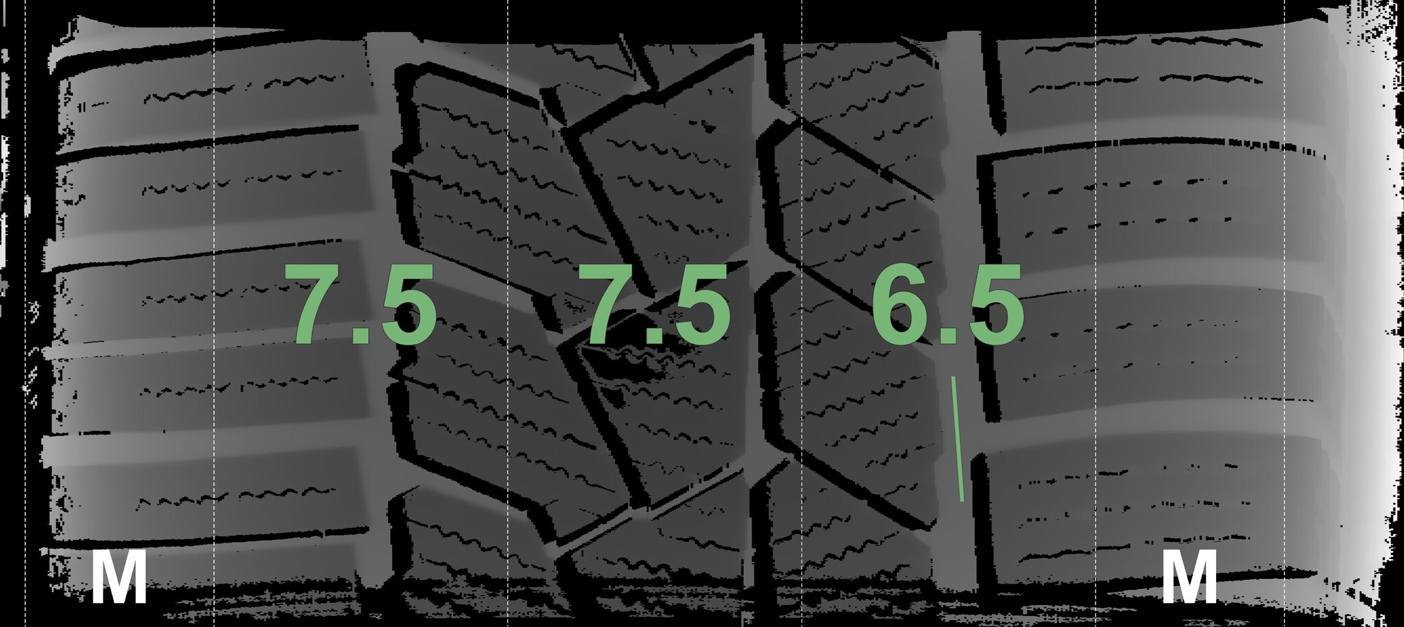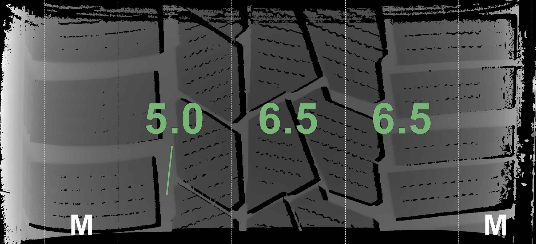 The measured tread depths and the details of the rims are shown above.