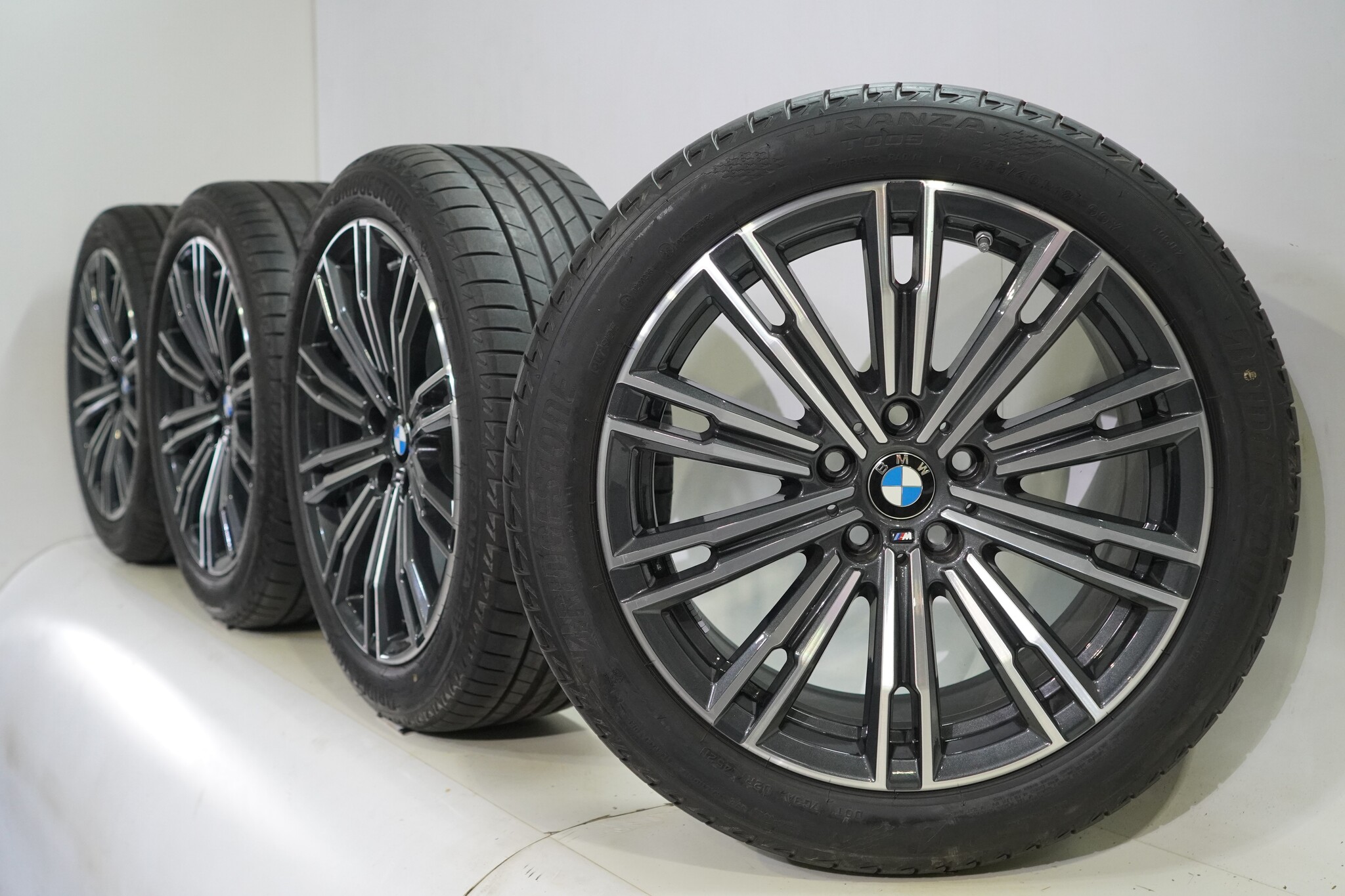 Original BMW wheelset, styling 790M, 18-inch rims with Bridgestone TURANZA T005 summer tires. These rims are original BMW brand rims and suitable for: BMW 2 series 3 series 4 series G20 G21 G22 G42.