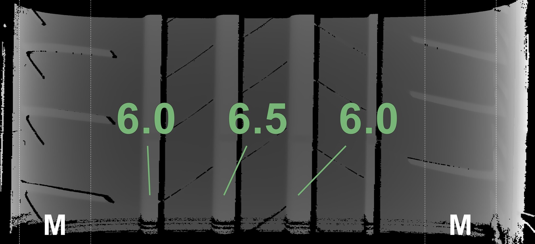 The measured tread depths and details of the rims are shown above.