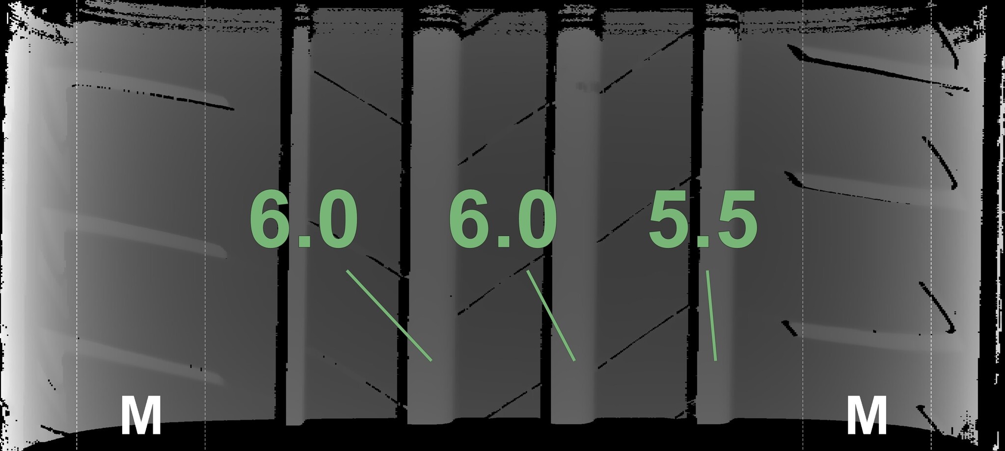| Condition | Profile depth | DOT | Front Left | Used | 5.8 mm | 4621 |