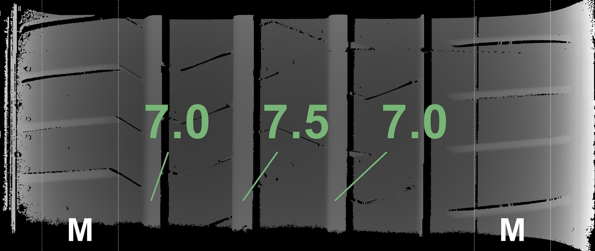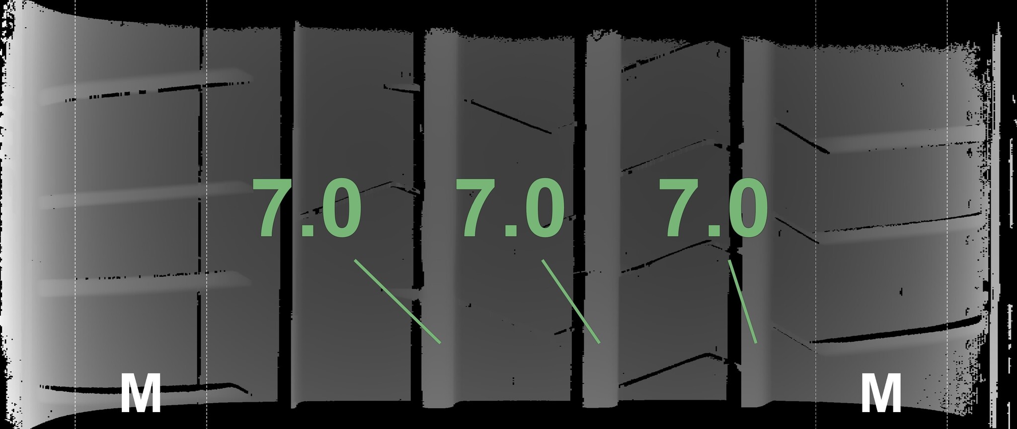 | Condition | Profile depth | DOT | Rear Right | New | 7.0 mm | 1725 |