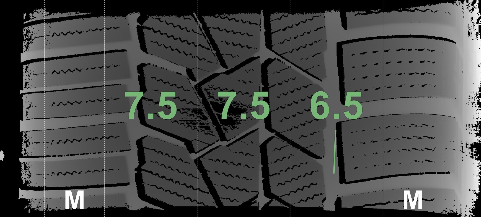 Condition | Profile depth | DOT | Front Right | Used | 6.5 mm | 3820 |