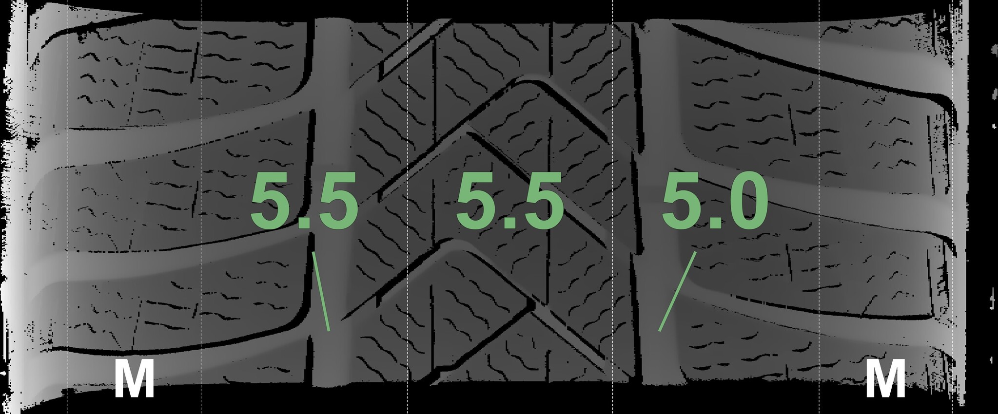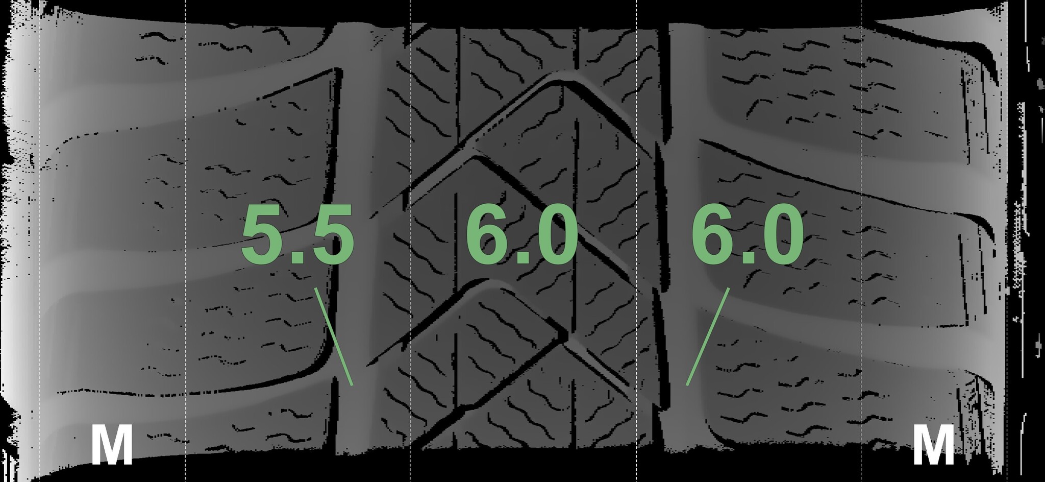 The measured tread depths and details of the rims are shown above.