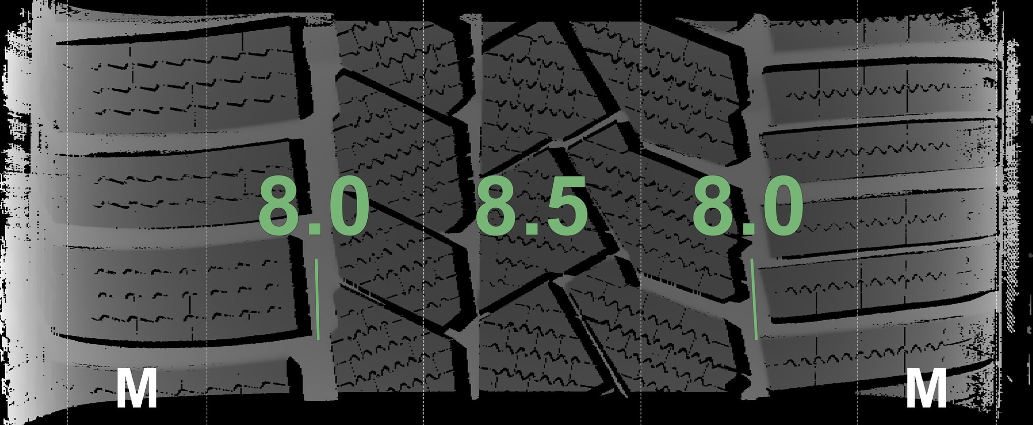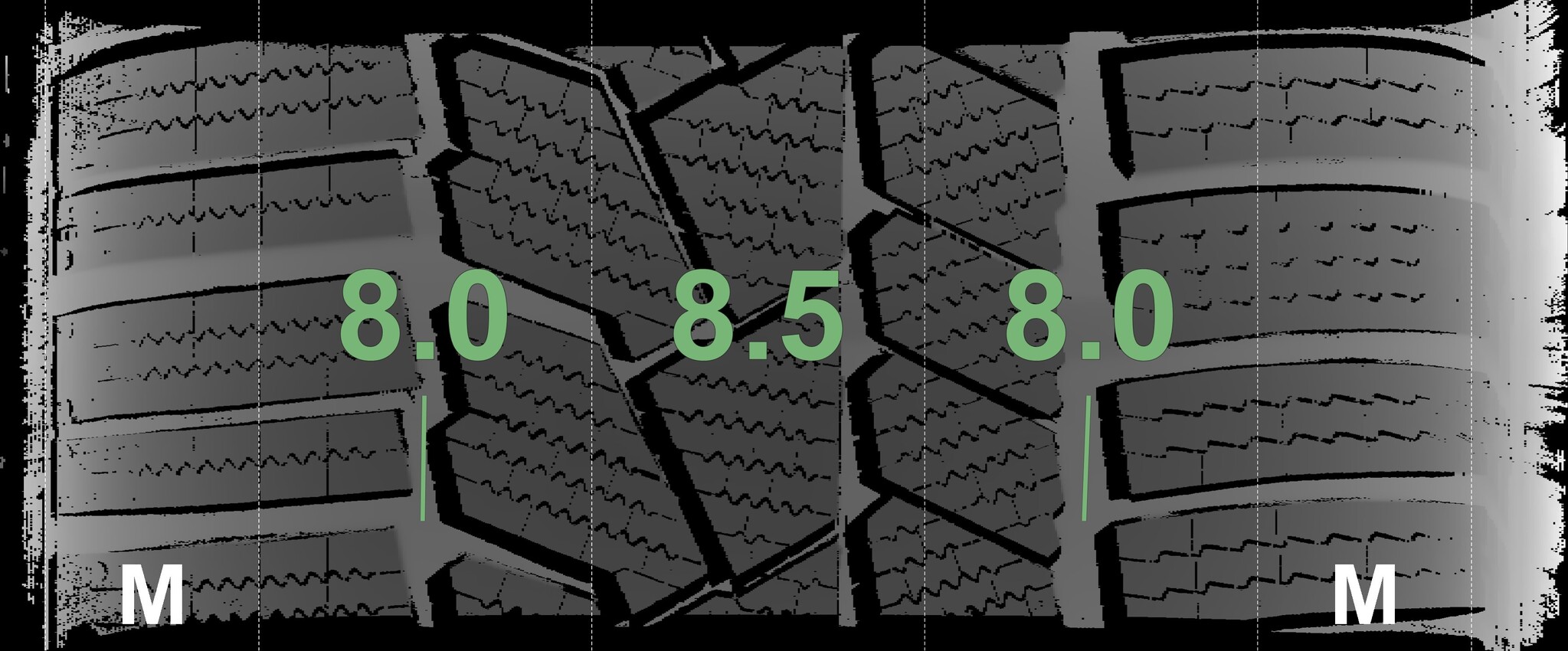 Condition | Profile depth | DOT | Rear Right | New | 8.0 mm | 4122 |