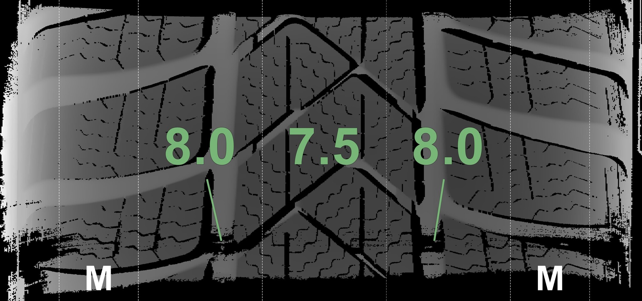The measured tread depths and details of the rims are shown above.