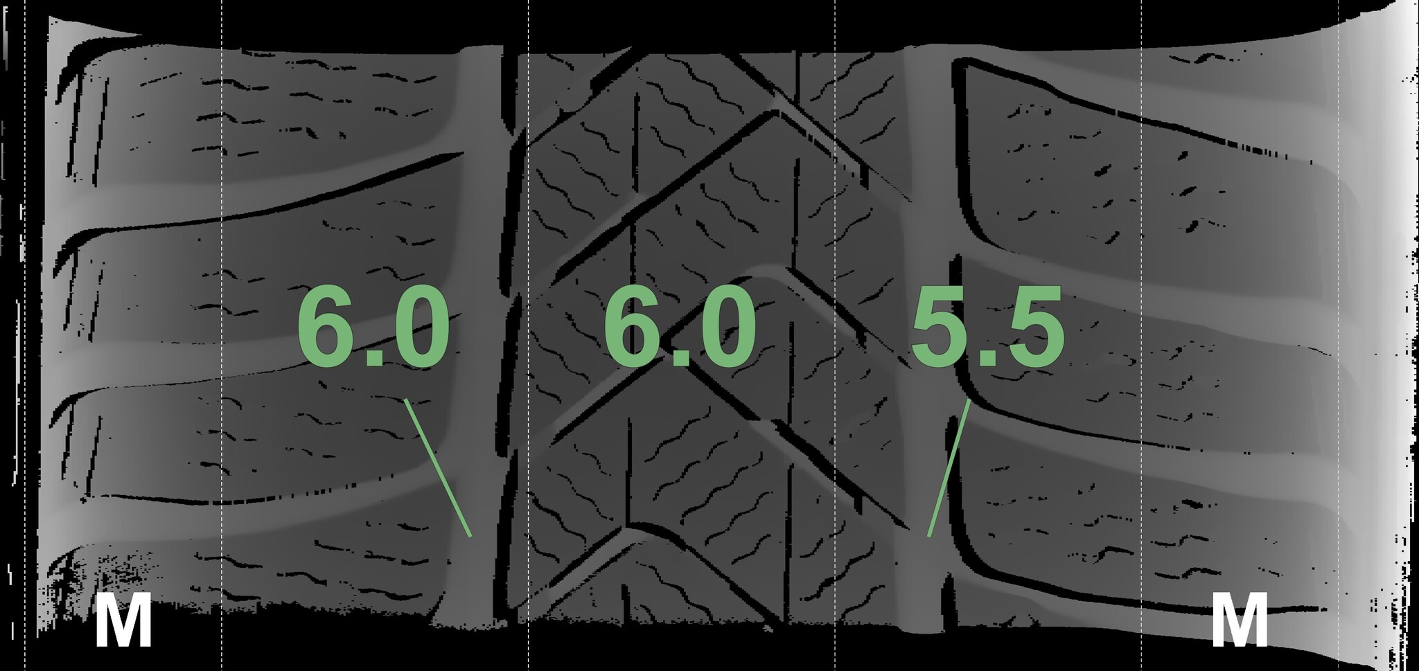 | Condition | Profile depth | DOT | Front Left | Used | 5.0 mm | 0322 |