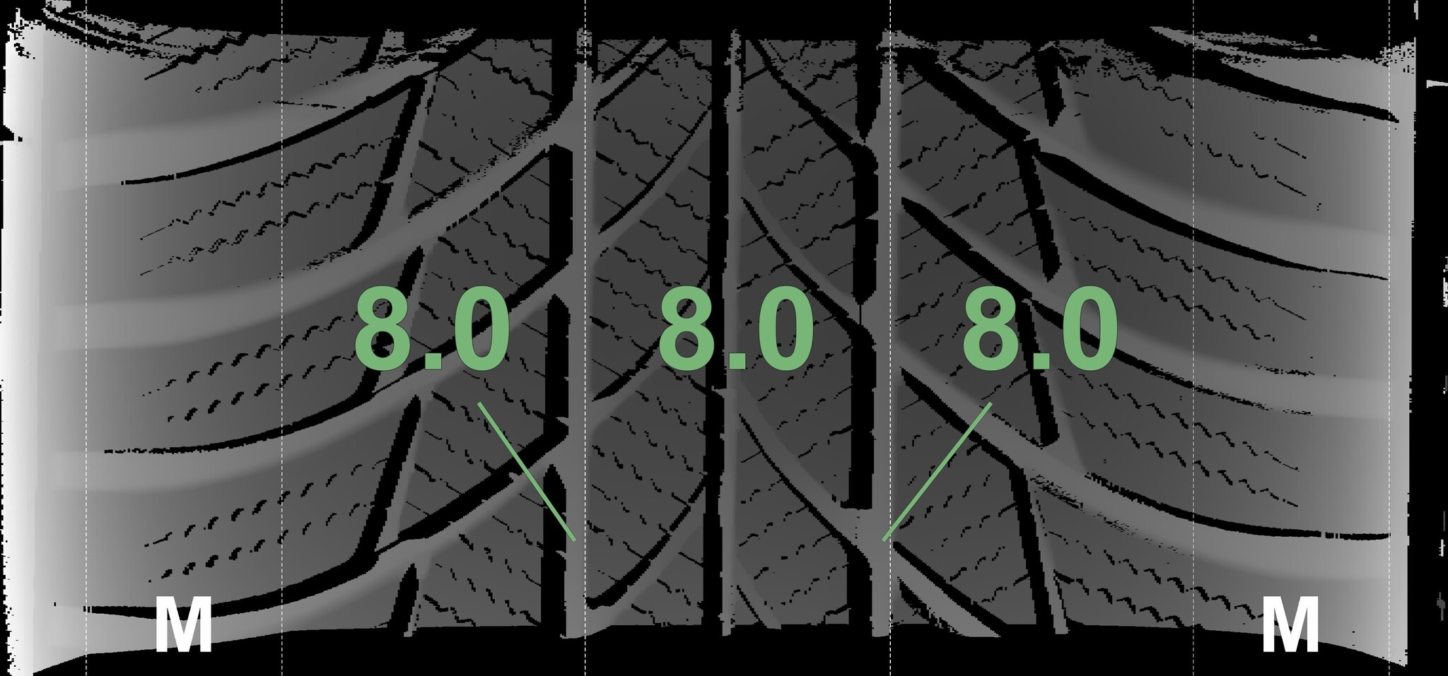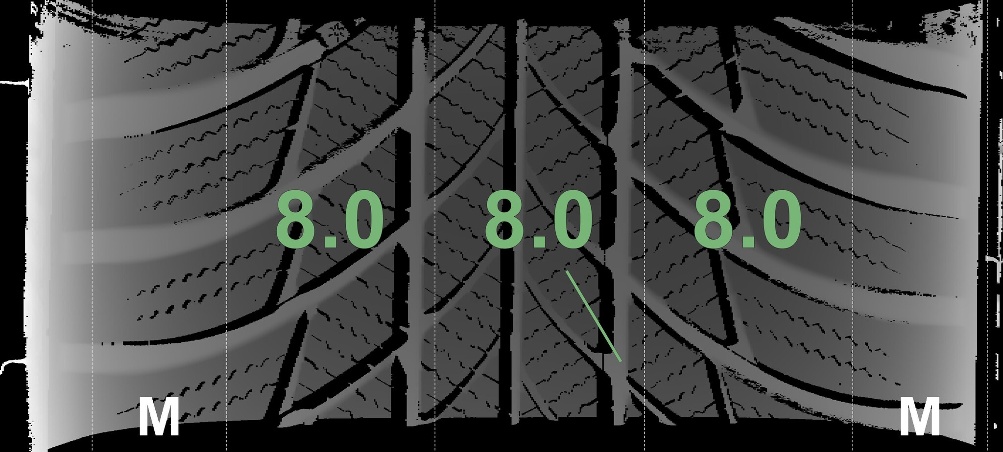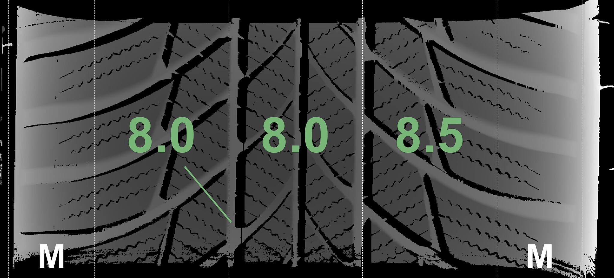 | Condition | Profile depth | DOT | Front Right | New | 8.0 mm | 2219 |