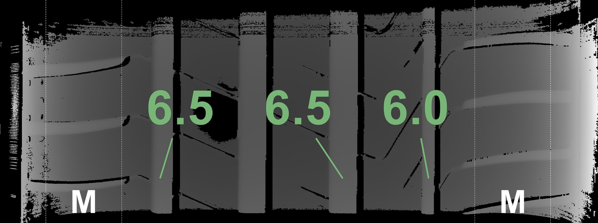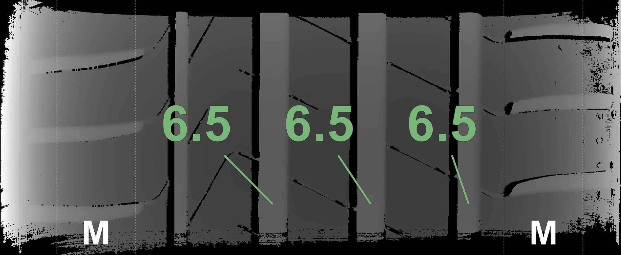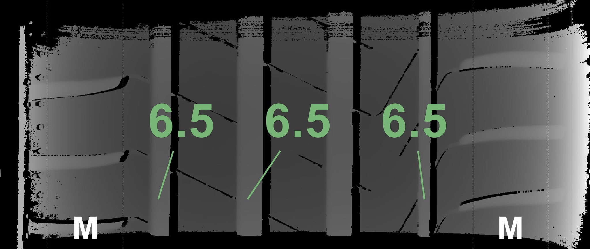 Condition | Profile depth | DOT | Front Left | Demo studs still visible | 6.5 mm | 4623 |