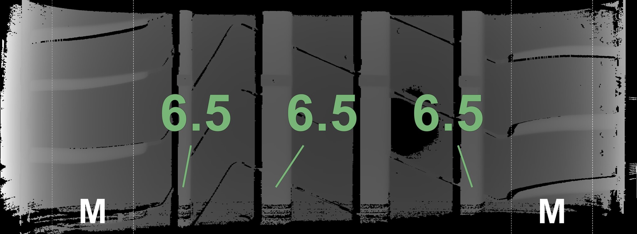 Condition | Profile depth | DOT | Front Right | Demo studs still visible | 6.5 mm | 4623 |