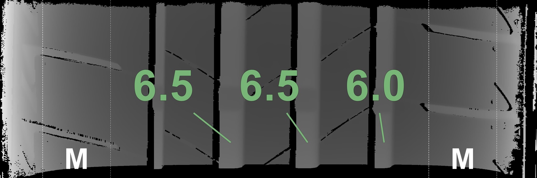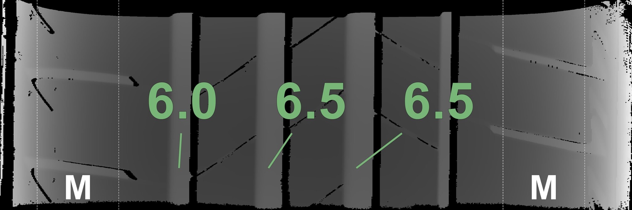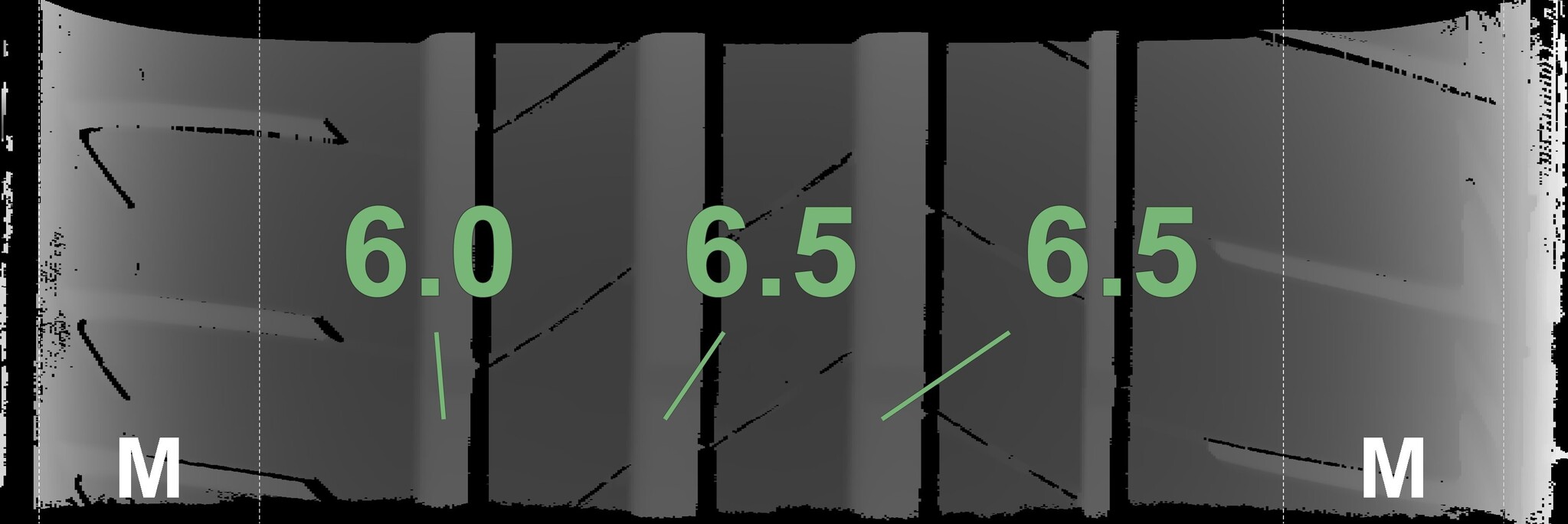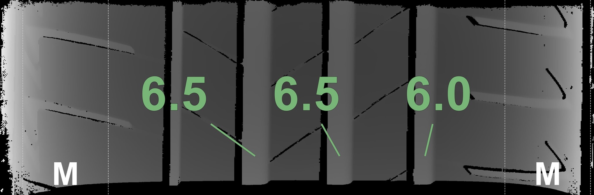 The measured tread depths and the details of the rims are shown above.