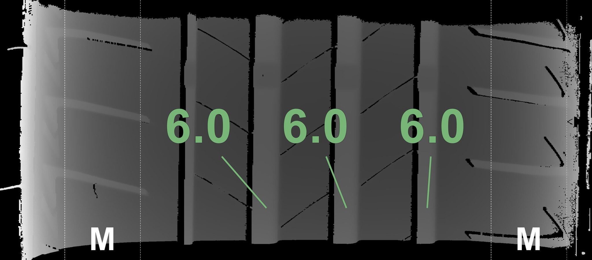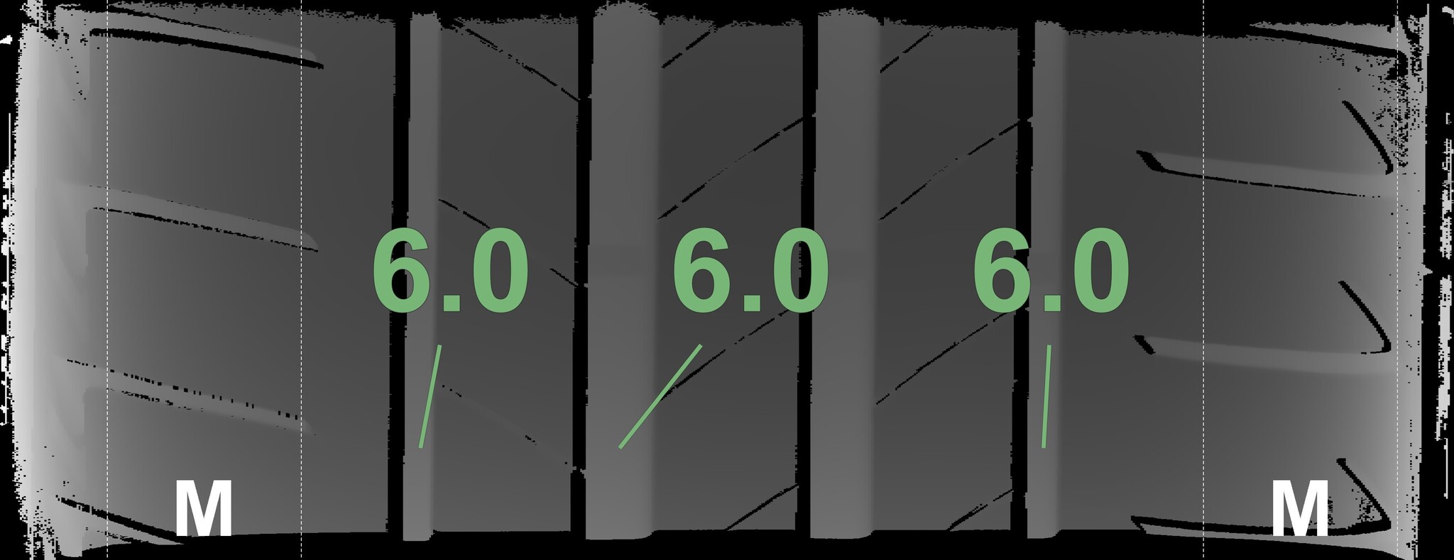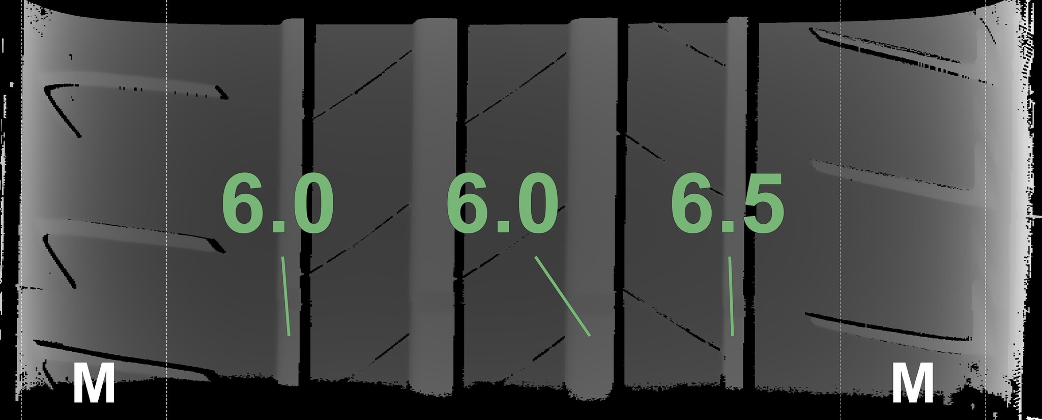 | Condition | Profile depth | DOT | Front Left | Used | 6.0 mm | 1224 |