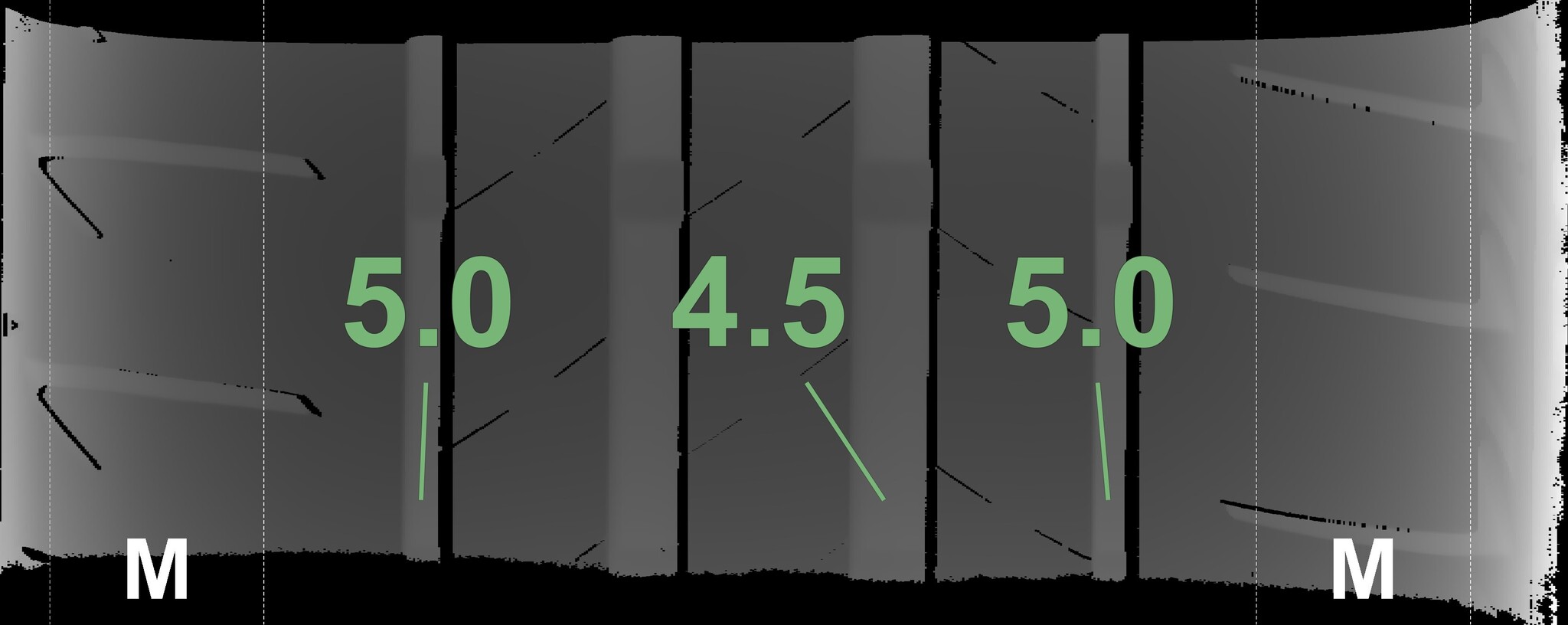 | Condition | Profile depth | DOT | Front Left | Used | 5.0 mm | 4821 |