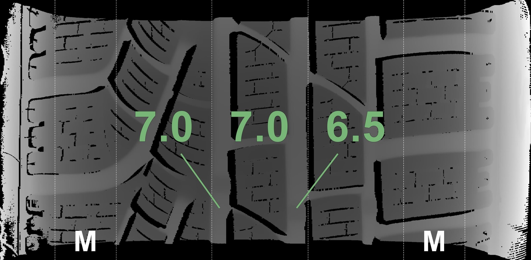 | Condition | Profile depth | DOT | Front Left | Used | 6.5 mm | 3718 |