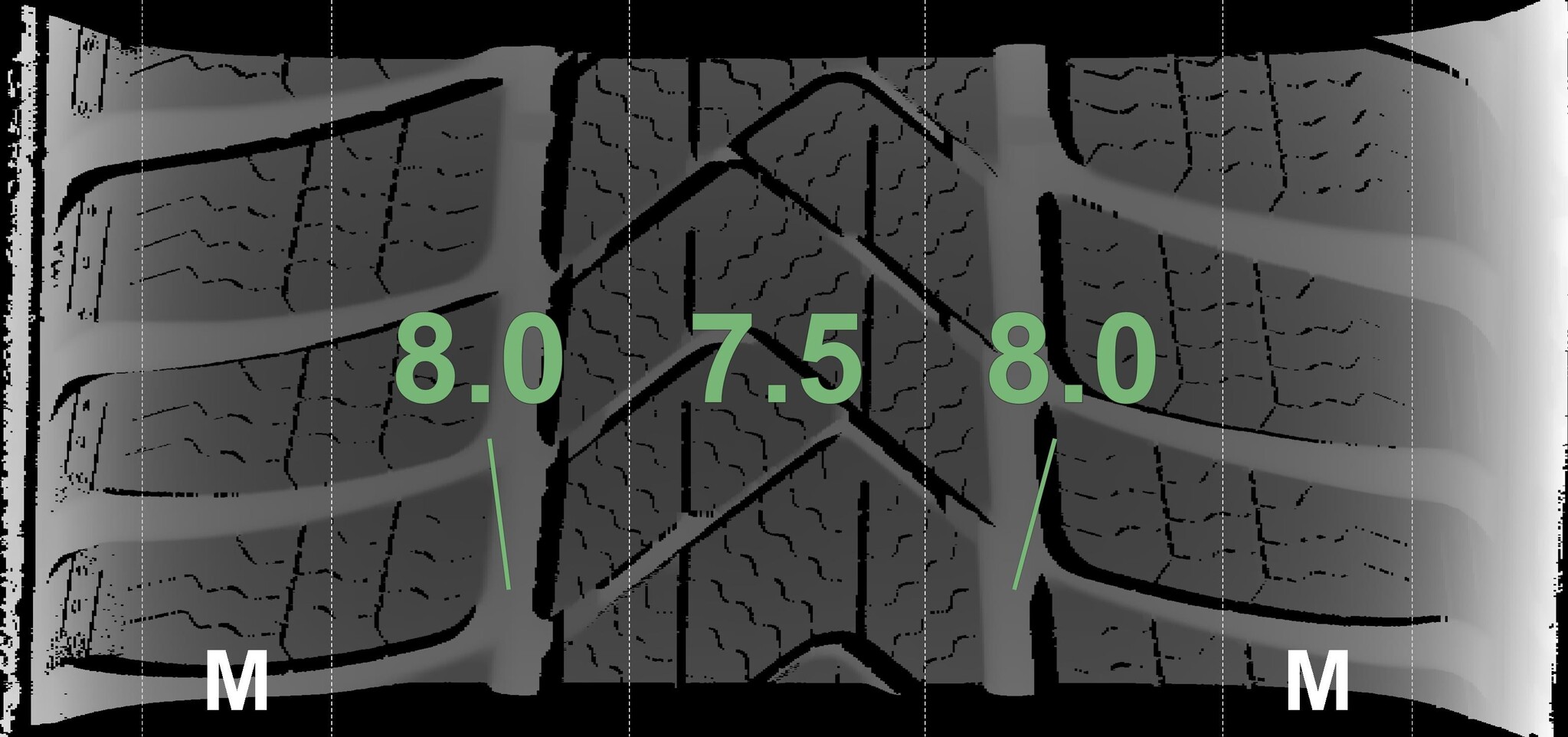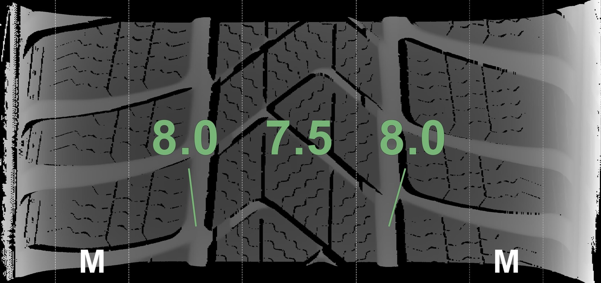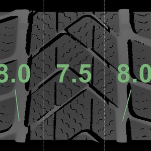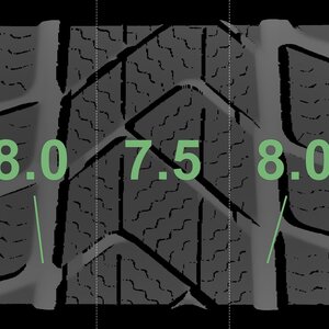 The measured tread depths and details of the rims are shown above.
