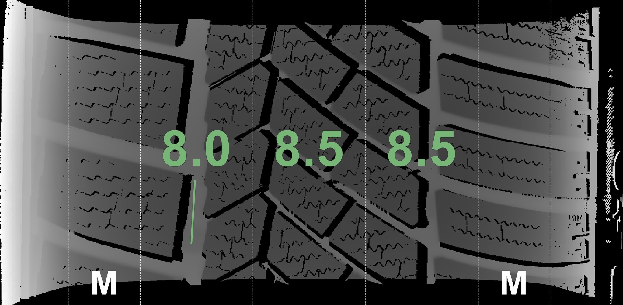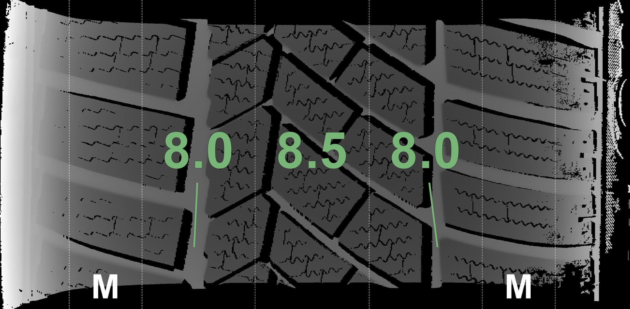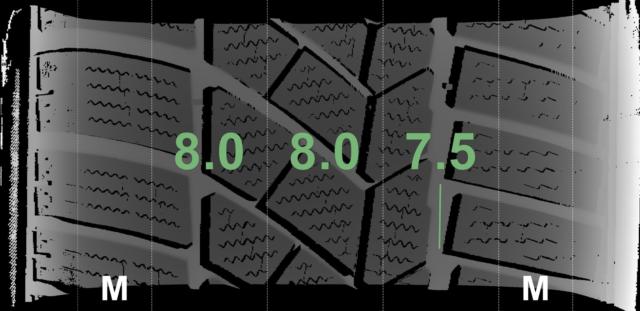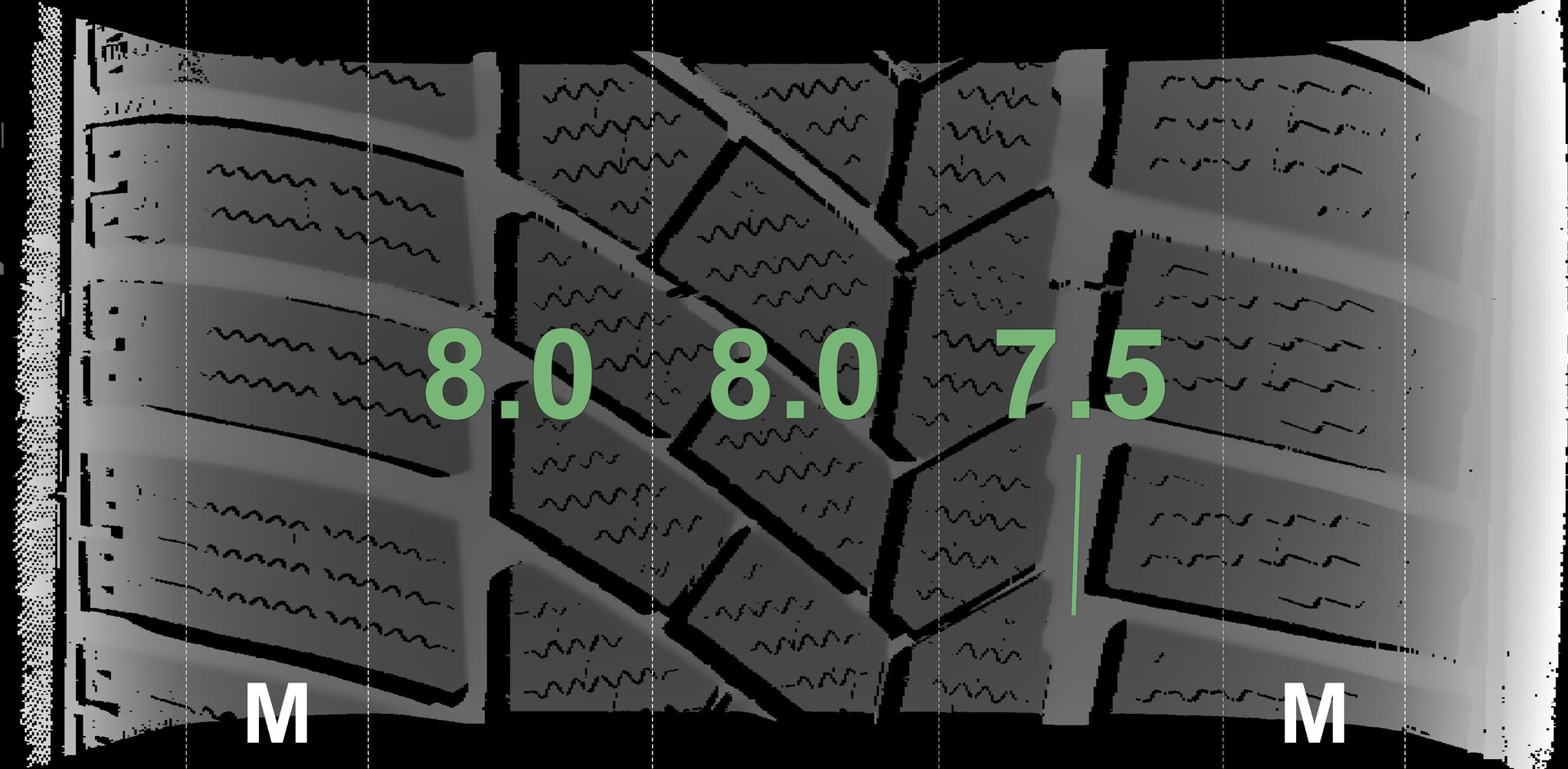 The measured tread depths and details of the rims are shown above.