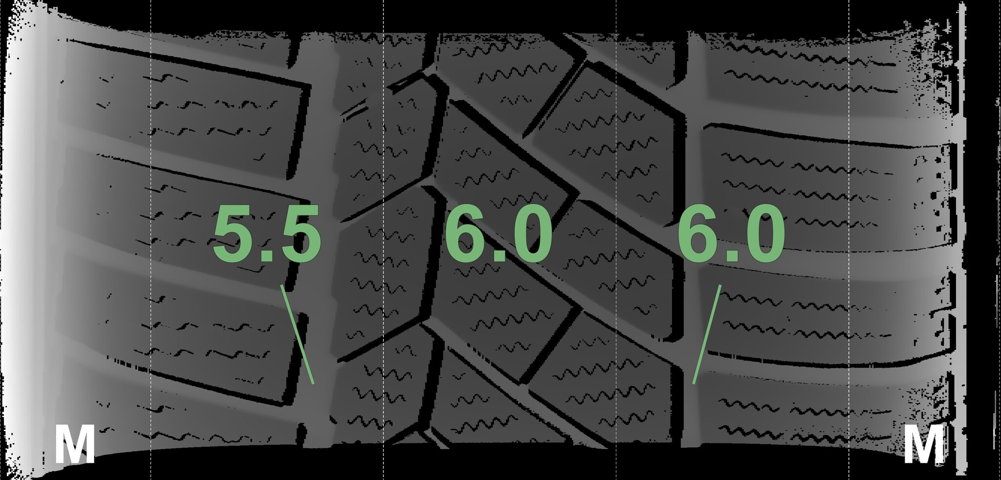 | Condition | Profile depth | DOT | Rear Right | Used | 6.0 mm | 3119 |