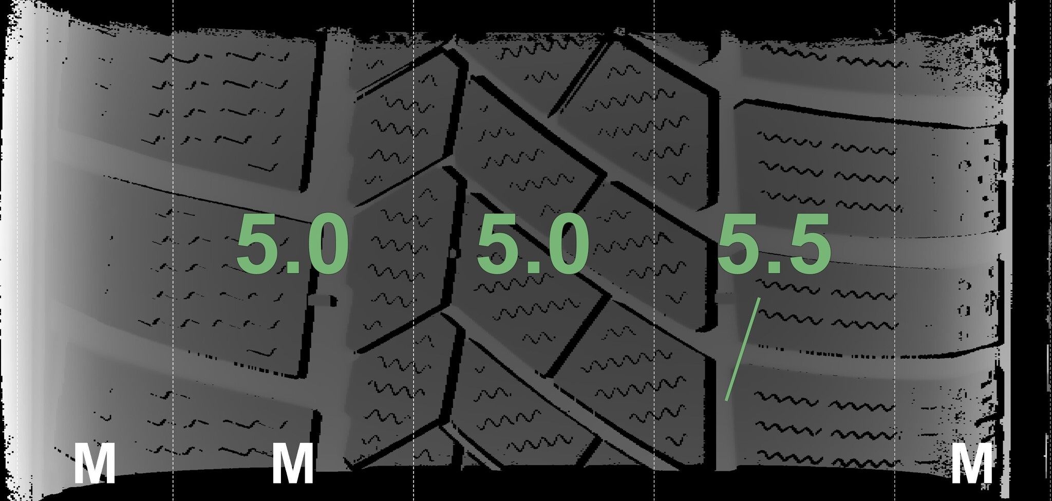 | Condition | Profile depth | DOT | Front Left | Used | 5.0 mm | 2519 |