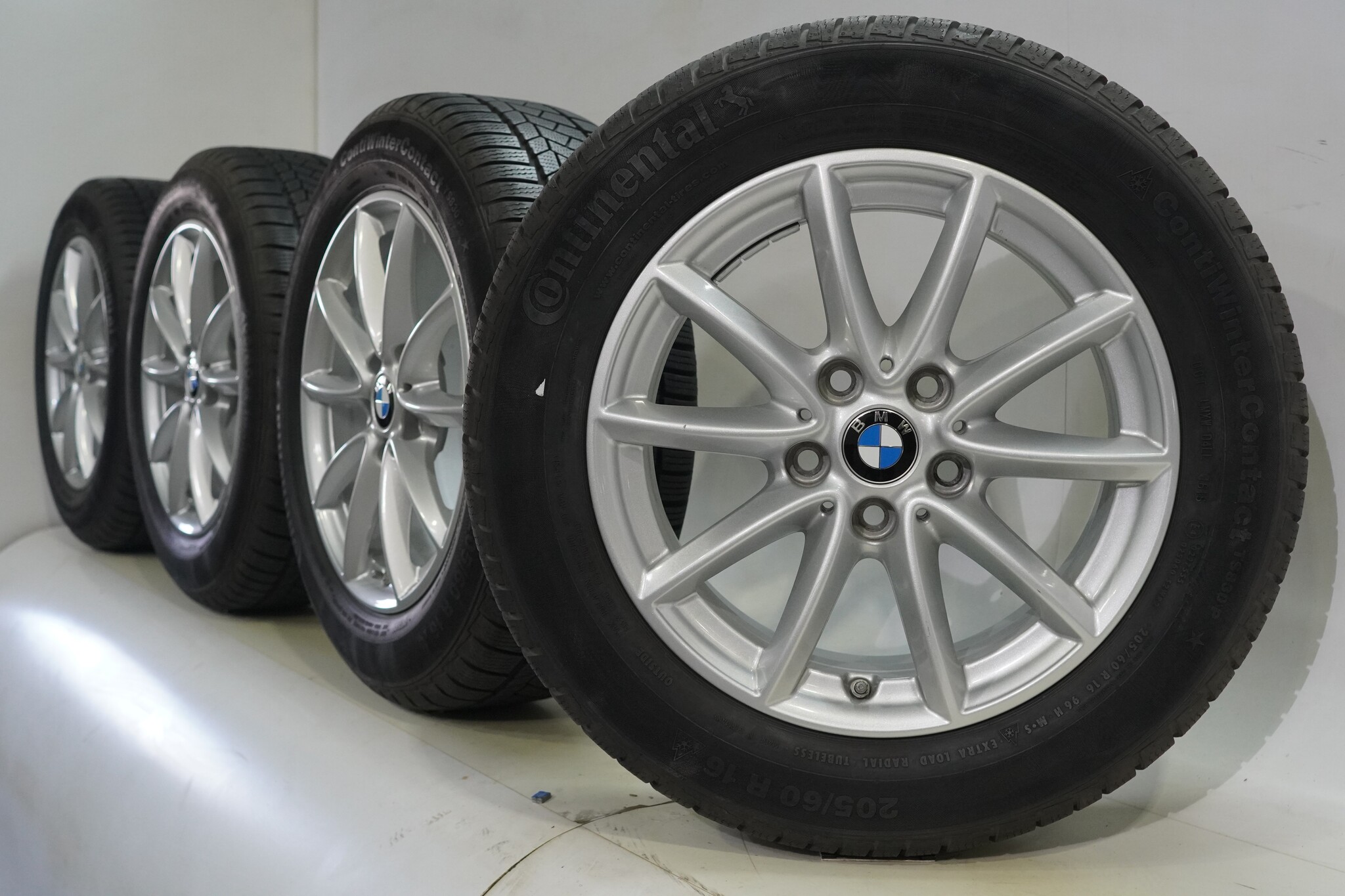 Original BMW wheelset, styling 471, 16-inch rims with Continental WinterContact TS 830 P winter tires. These rims are original BMW brand rims and suitable for: BMW 2 Series F45 F46 Active Gran Tourer.