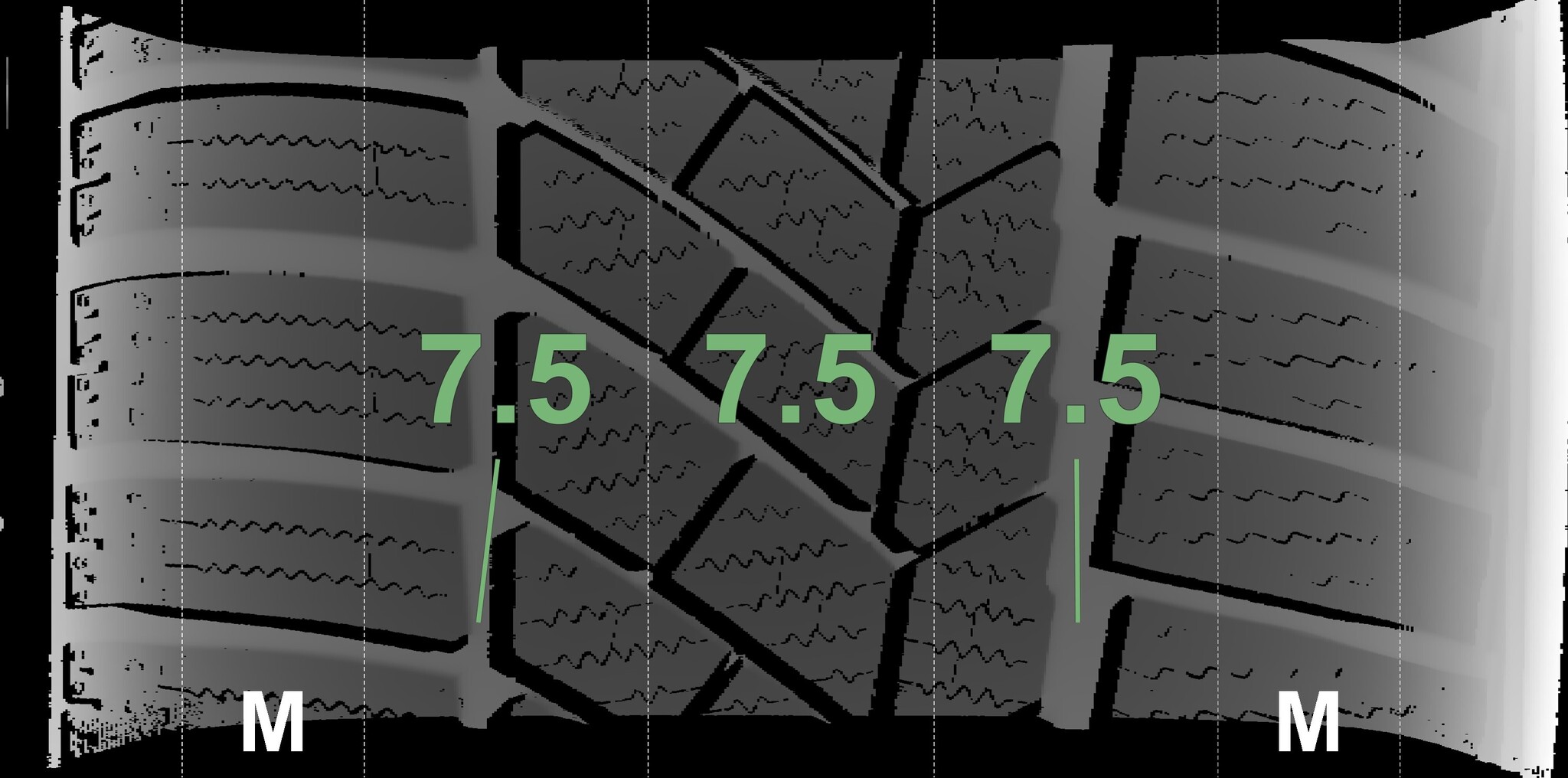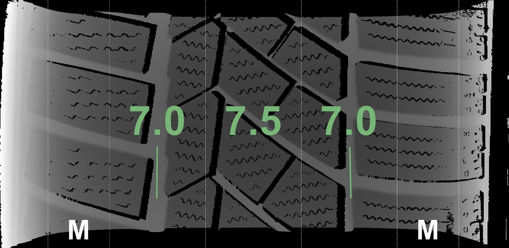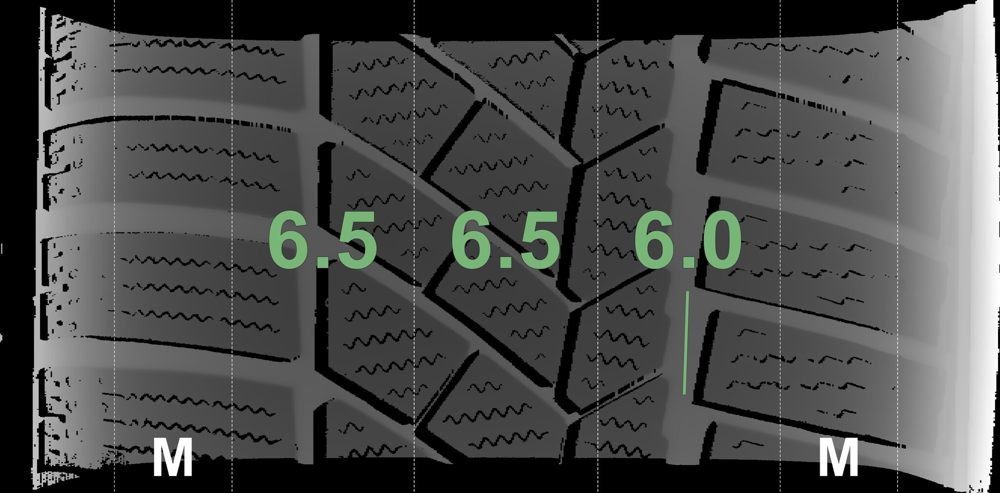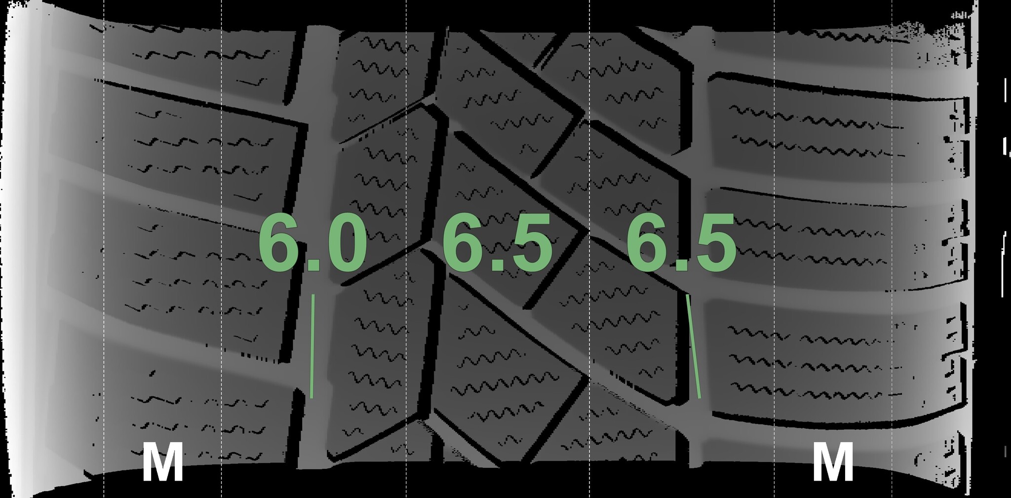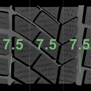 The measured tread depths and the details of the rims are shown above.