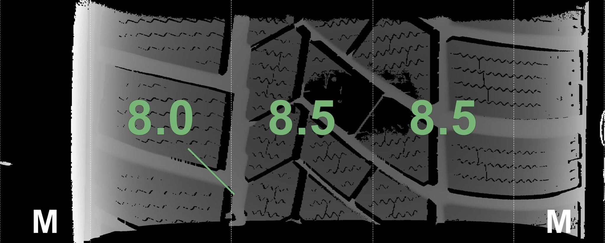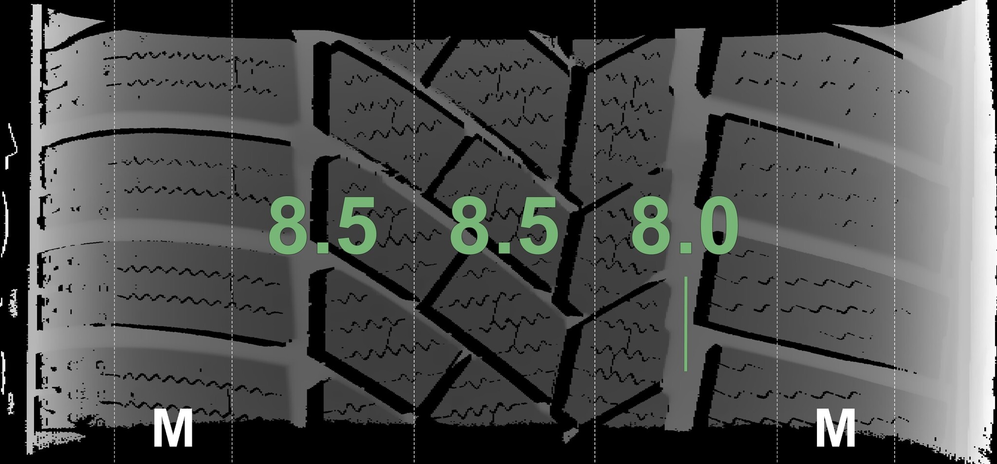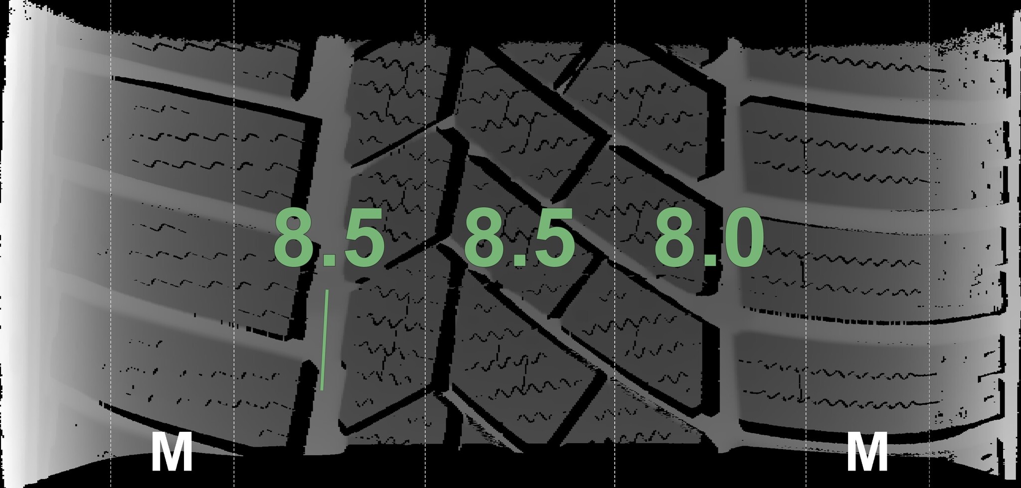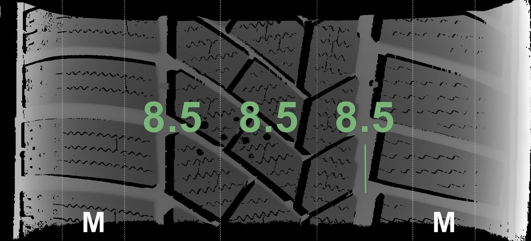| Condition | Profile depth | DOT | Front Right | New | 8.5 mm | 3619 |