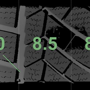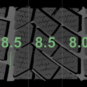 The measured tread depths and the details of the rims are shown above.