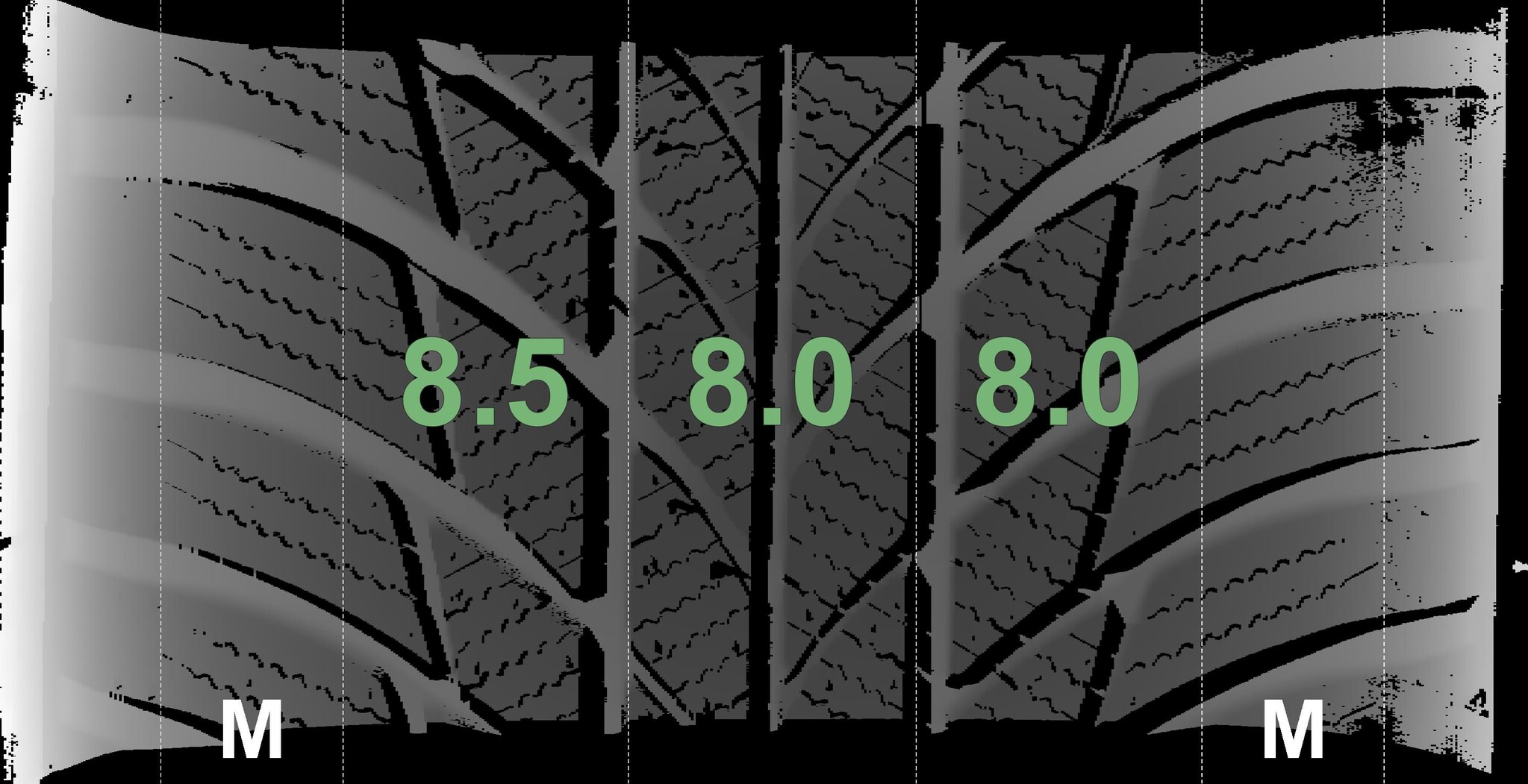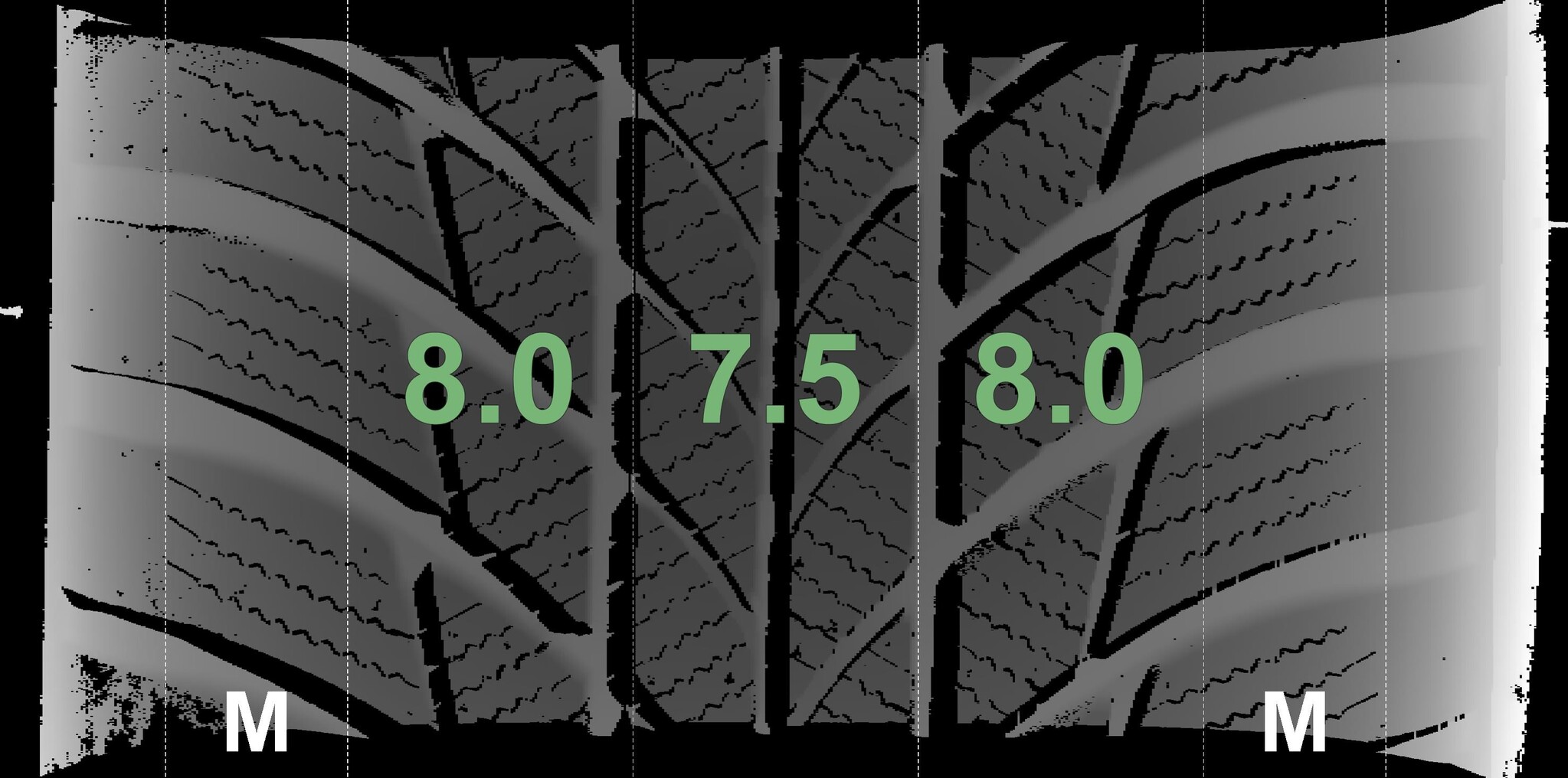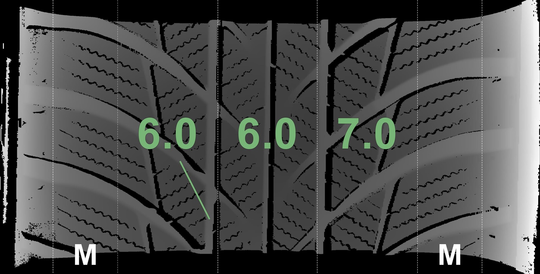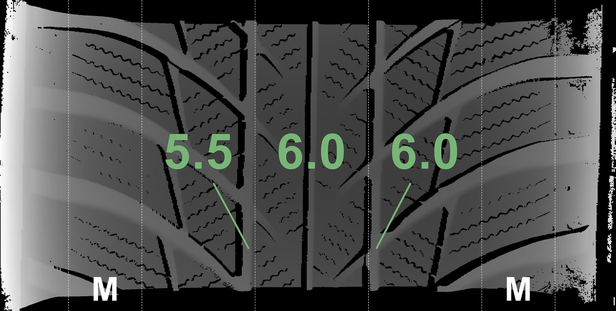 | Condition | Profile depth | DOT | Front Right | Used | 6.0 mm | 3117 |
