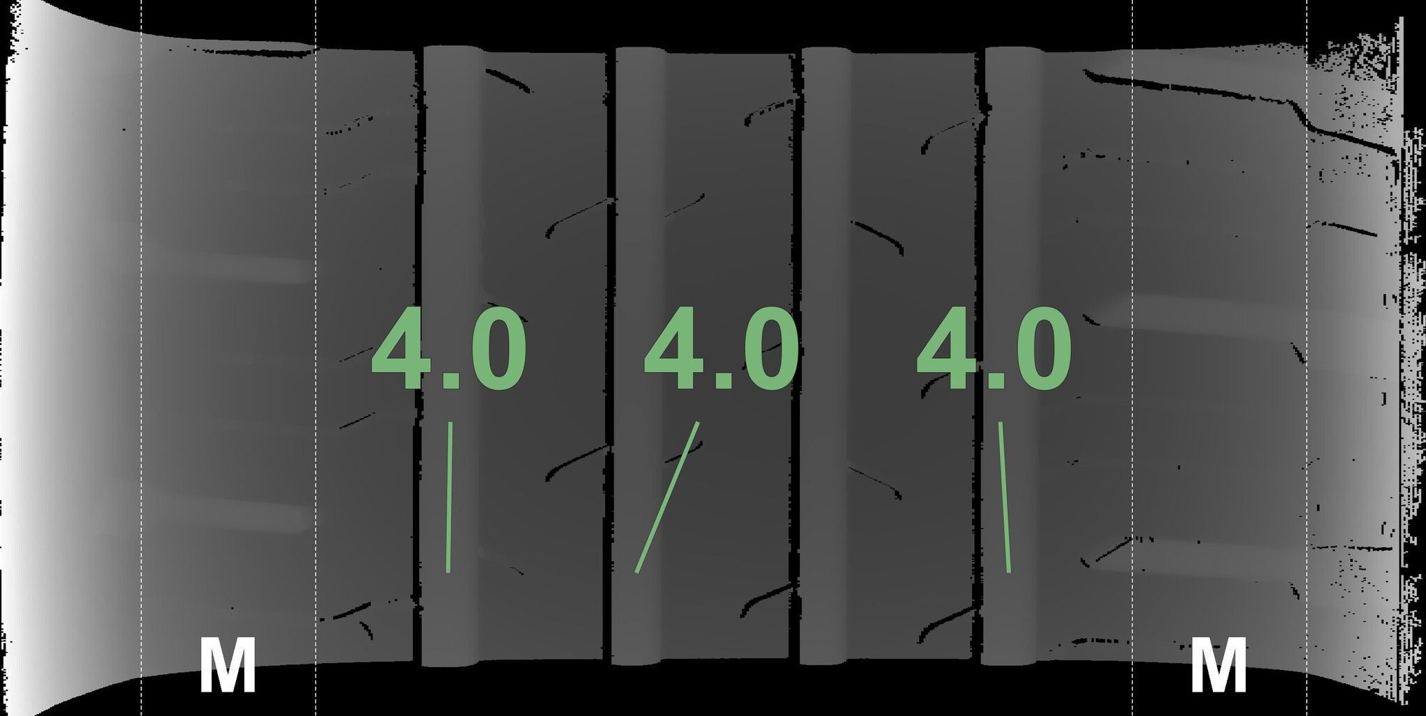 Condition | Profile depth | DOT | Front Right | Used | 4.0 mm | 4919 |